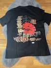 The Travis Scott Flower Merch T-Shirt by LaFlame features a black cotton fabric with a graphic flower print. It has short sleeves, a regular fit, and is a limited edition item. The size is medium for men, making it a stylish and unique addition to any wardrobe.