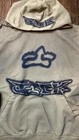 This is a Travis Scott x Fox Racing Complexcon 24' Exclusive Hoodie in size XL. It features a graphic print with drawstring closure, made of cotton fleece material. The hoodie has accents of a logo and a hooded style, with a design inspired by collaborations with Nike, Concepts, Kith, Bodega, and music influences. The hoodie is associated with Travis Scott, Air Jordan, UNC, and hip hop culture.