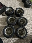 This Traxxas 1/10 T-Maxx 2.5 * 2 SS CHROME WHEELS & 3.8" TALON TIRES * 5174R (6) is a great addition to any R/C enthusiast's collection. The set includes two chrome wheels and three 3.8" talon tires, all compatible with Traxxas brand and 1:10 scale. The MPN(s) for this set are 5174R TRA5174R 49104-1 and the color is as per description. The set is suitable for ages 17 years and up and was manufactured in China. These R/C parts are perfect for those looking to upgrade their vehicle's performance and style. The set is compatible with various Traxxas models and is made of high-quality materials to ensure durability and longevity. Get your hands on this amazing set today and take your R/C experience to the next level! 6 of them, rubber is in good shape, hubs are good