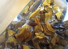 This beautiful resin paperweight figurine measures 3" in height, 2.5" in width at the base. It has tiger eye and Peridot with copper wire creating the tree trunk. Please see all photographs as they are part of the description. Shipped with USPS Ground Mail. F41