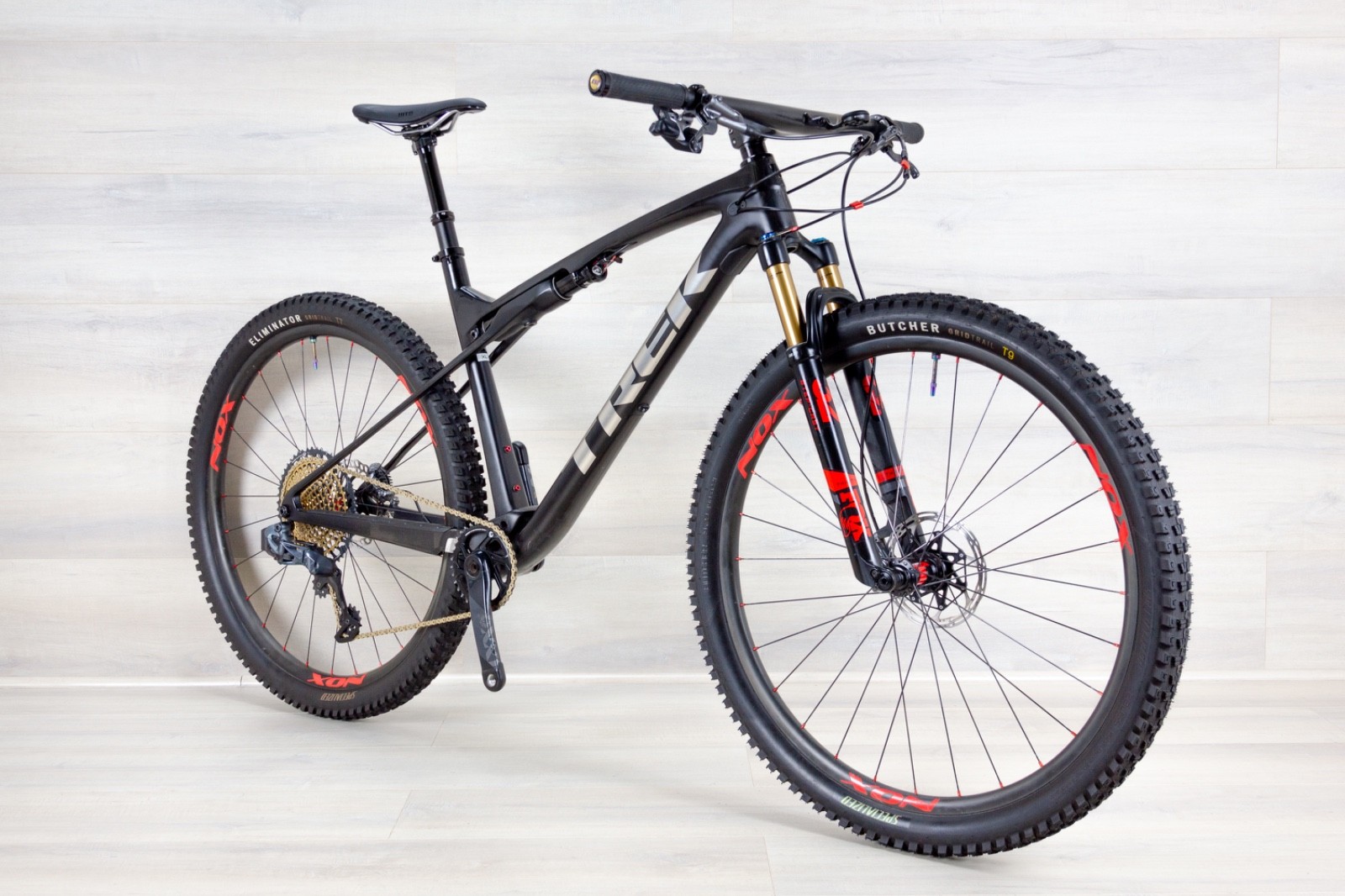 Trek Supercaliber 9.9 GEN 1 Sram XX1 AXS - X-Large •Material - carbon •Brakes - Shimano XTR hydraulic •Brand - Trek •Model - Supercaliber 9.9 XX1 •MSRP - 10499$ •Weight - 22.8lb •Cassette - SRAM Eagle Gold 10/52 •Chainrings - SRAM eagle 34T •Charger - yes •Components group - SRAM XX1 AXS 12sp •Crank - Sram XX1 175mm carbon •Drivetrain - 1x12 •Fit Range - 5.11 to 6.4 ( approx ) •Fork - Fox 32 Step-Cast Kashmia gold coat •Fork travel - 100mm •Front derailleur - •Miles - 1200-1500 ( approximately and depending on the frame condition and components ) •Rear derailleur - SRAM XX1 AXS 12 speeds •Rear shock travel - 60mm •Seat post - FOX dropper seat post •Stem - Bontrager 90mm -9 •Tires - Specialized Butcher 2.3 front and Eliminator 2.3 rear •Wheels, material - NOX carbon rims, DT Swiss 240s hubs •Tubeless compatibility - ubeless •Handlebars - Bontrager RSL one piece carbon •Saddle - WTB •Mechanic notes: Pre - Owned, good shape. The bike like any MTB that sees real trail time, there are some cosmetic marks from regular use (showed on pictures).