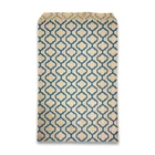 Trellis Dot patterned flat paper gift bags are a great choice for any retailer, party thrower or dedicated collector of flat paper gift bags. The eye-catching design is sure to draw attention from your family, customers, and friends. The 4 different sizes (4” x 6”, 5” x 7”, 6” x 9”, 8.5” x 11”) allow the bag to hold a wide variety of items, everything from jewelry boxes to baked goods to whatever party favors you have planned! We offer these bags in a variety of quantities to cater to your individual needs. Those who are having small events at their homes might prefer our 100 pack, while retailers who need them in bulk might gravitate towards our larger offerings. Each bag is coated with a semi-gloss finish for both aesthetics and to provide minor protection from tearing and piercing. These bags have no gusset which allows them to lie as flat as your choice of filling will allow, making them perfect for table settings or on top of display cases. We offer both white and kraft bag bases with patterns of silver, blue and white. We are sure to have a bag for every occasion! These Trellis design paper bags are stylish and eye catching! The perfect accent for party favors, small gifts and more. Sold in packs of 100, 200 and 300. Whether you’re buying in bulk or just need a few for a party this weekend, we’ve got you covered! Bags come in a variety of sizes: (4” x 6”), (5” x 7”), (6” x 9”), (8.5” x 11”). Find the right size for you! A great choice for crafts, merchandise, and small gifts. Use it for parties, weddings or storefronts! Our flat paper bags are designed to be more tear resistant than typical paper bags. They are also made to be easy to open and easy to fill.