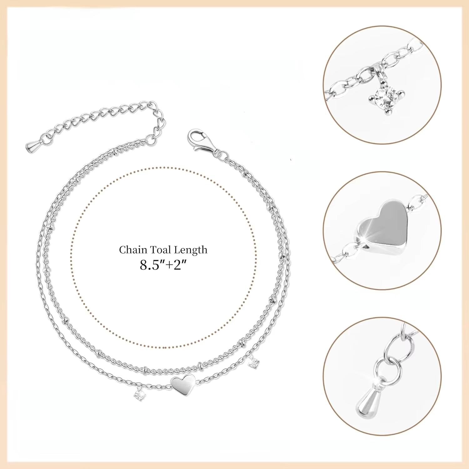 $ 13.2Dainty Layered Waterproof Sterling Silver Ankle Bracelet for Women