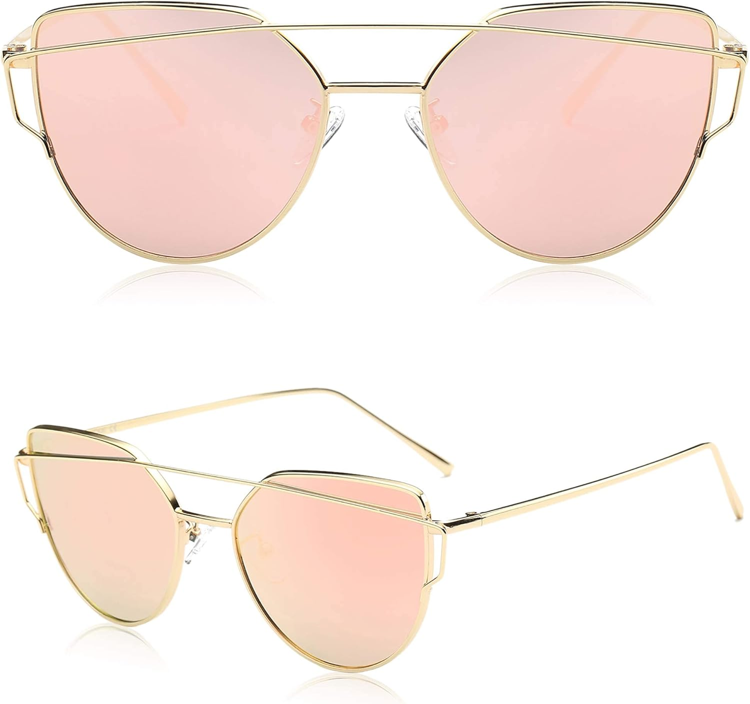 Love these stylish cat-eye sunglasses! The bright gold/pink mirrored lenses add a chic, retro vibe, and they feel lightweight yet durable. Perfect for elevating any outfit while providing great sun protection. Super comfortable for all-day wear—definitely a must-have accessory! Fast shipping too. Highly recommend!