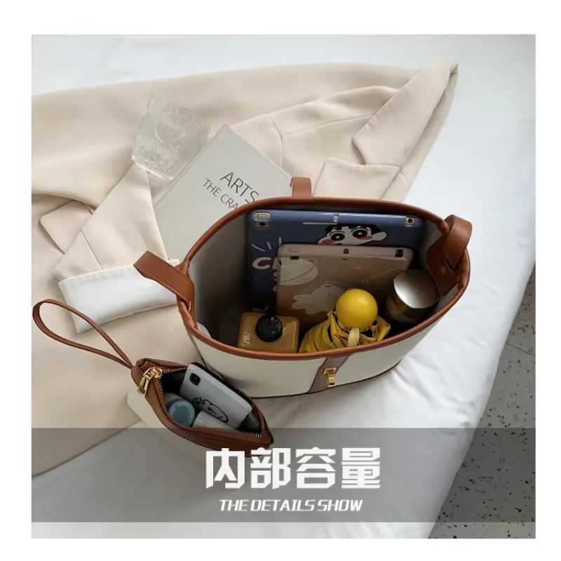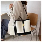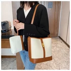 Introducing the Stylish Contrast Color Canvas Tote Bag, a must-have accessory for the modern woman on the go! This large capacity crossbody bag is not only functional but also a fashionable statement piece that complements any outfit. Crafted from high-quality canvas, this tote is designed to withstand daily wear while providing a soft yet durable feel. The eye-catching contrast colors add a pop of personality, making it perfect for various occasions - whether you're heading to the office, running errands, or enjoying a day out with friends. The bucket shape offers ample space for all your essentials, while the interior cell phone pocket ensures that your phone is easily accessible. With a secure hasp closure, you can rest assured that your belongings are safe and sound. The single strap design allows for comfortable crossbody wear, making it easy to carry throughout your busy day. This versatile tote is suitable for women of all ages and styles, making it an ideal gift for yourself or a loved one. Available in a range of stylish colors, this tote bag is not just an accessory; it's a lifestyle choice. Elevate your wardrobe with the Stylish Contrast Color Canvas Tote Bag, where practicality meets chic design!