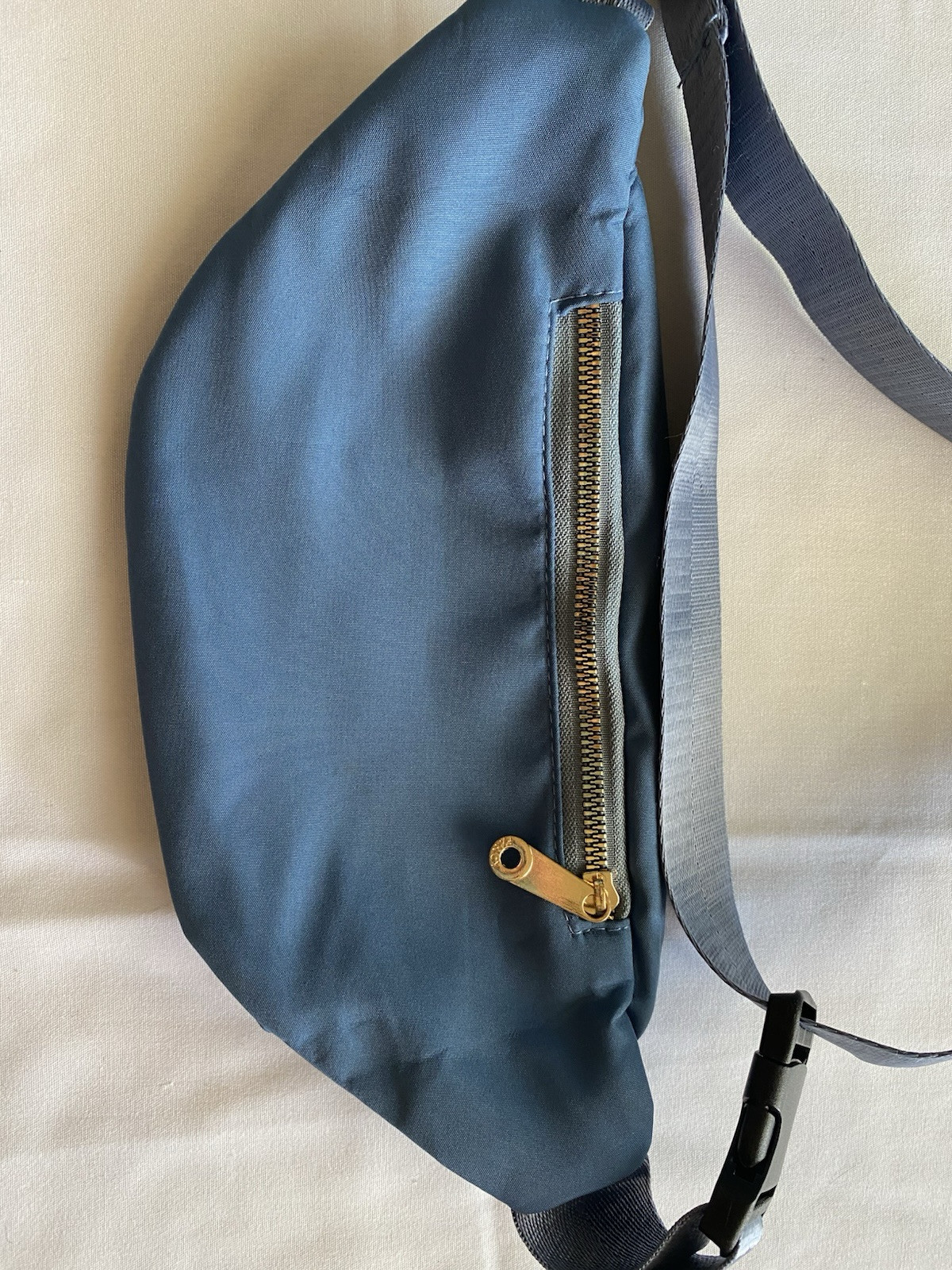 This Fashion Jingpin Creations Teal Fanny Pack features gold hardware, including zippers, and a stylish satin exterior in gold. It is designed with a belt bag style, making it a trendy and functional accessory for women. very good conditions.