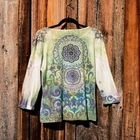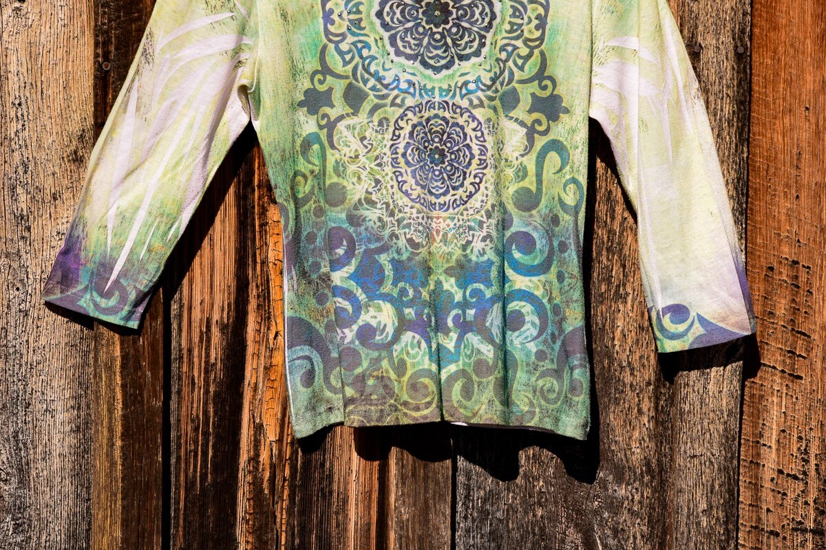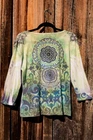 Description: Women's "Katies Closet" trendy decorative colorful blues geo pattern tee 3/4 sleeve size Small. Wear it with: Jeans, shorts, khakis Size: Small Fit: True and a little on the short side.. no tucking here. Care: EZ Machine wash and tumble medium. Measurements: Chest (pit to pit x2 for front & back circumference): 38" Sleeve: 13 " Length: 21" *All Righteous Rags clothes ship quick and come washed and ready to wear! Enjoy! Item # A-86