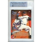 This Trevor Hoffman autographed 1997 Skybox Circa baseball card is a must-have for any collector. The hard-signed autograph by the Hall of Fame pitcher is authenticated by Beckett Authentication Services (BAS) with the authentication number 00016505551. The card features the San Diego Padres logo and includes a variety of features such as Padres Auto, San Diego Padres Signed, and Trevor Hoffman Autographed. The card is in great shape and comes slabbed for protection. This card is perfect for fans of the San Diego Padres, Florida Marlins, Miami Marlins, and Milwaukee Brewers. The 1997 card is an original and has a card number of 287. The trading card is made of card stock and is a standard size. Don't miss out on the opportunity to add this rare autographed card to your collection. Autographed in Blue Sharpie. Trevor Hoffman Autographed San Diego Padres 1997 Skybox Circa Baseball Card #287. This signature has been authenticated and Encapsulated by the Experts at Beckett Authentication Services (BAS). Certificate Number 00016505551.