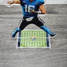 Item Details: Laser-cut 2D (Two Dimensional) acrylic standee Measure: Approx 6.4 inches tall Material: 100% Acrylic Add this to your never ending collection of football memorabilia. This laser-cut two dimensional figurine depicts your favorite player in action. Whether displayed in your home, office, for fan cave, this item is perfect for showcasing your love for football.