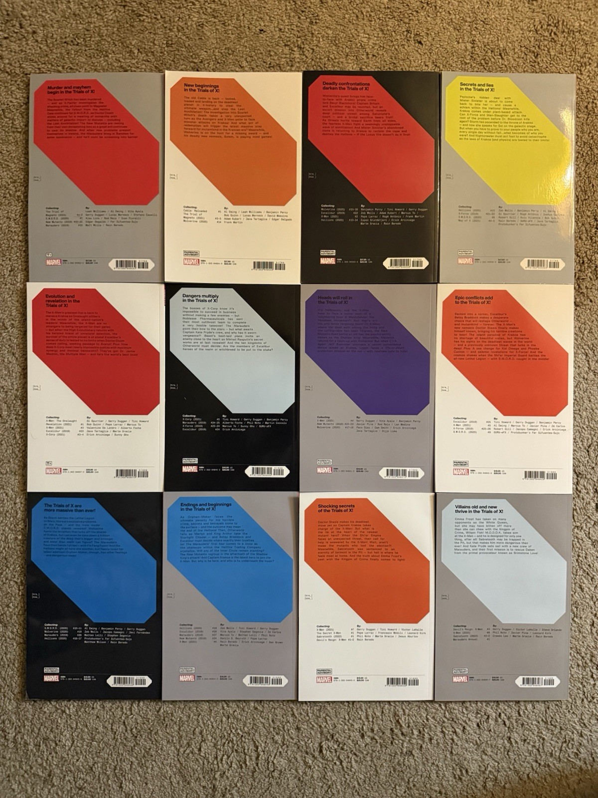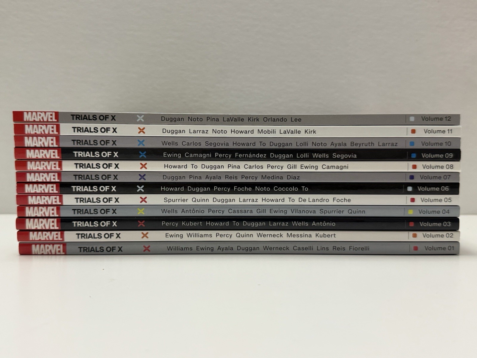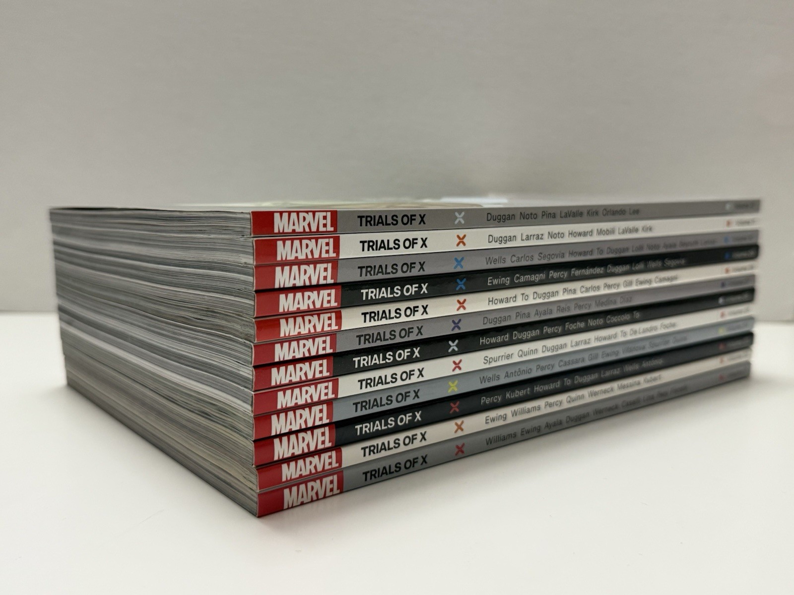 Trials of X Volume 1-12 Complete Set Trade Paperback TPB X-Men Krakoa Era. See photo of the rear covers for all books collected. Books will be packaged securely and shipped via USPS Media Mail and insured