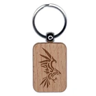 Tribal Eagle Hawk Engraved Wood Rectangle Keychain Tag Charm