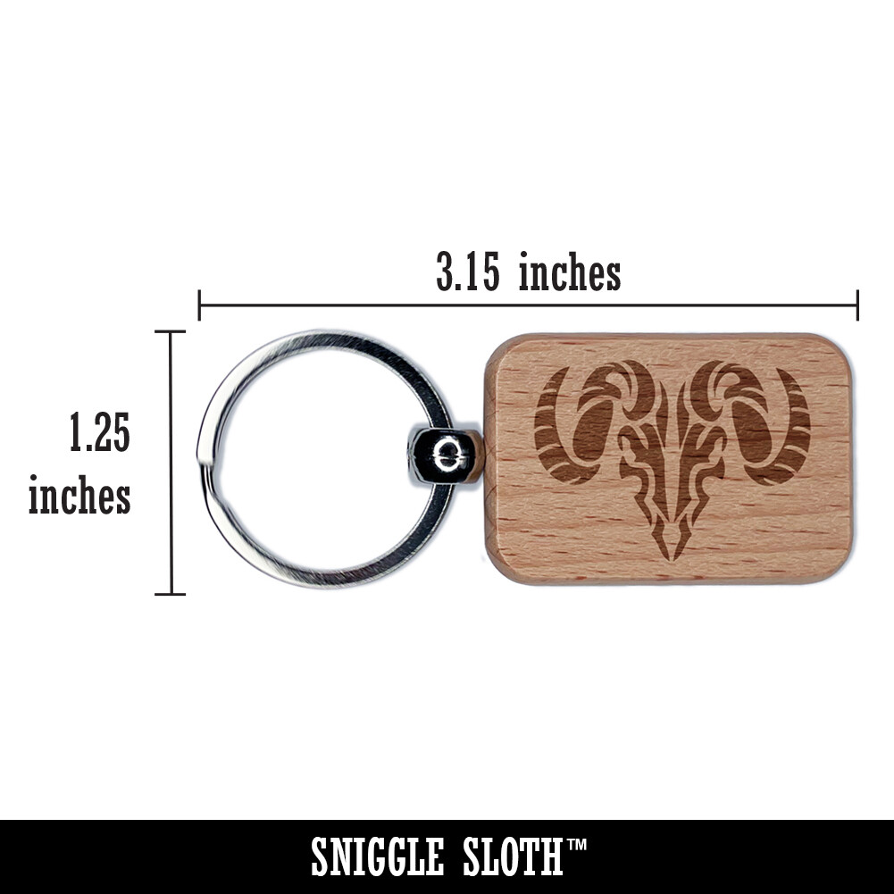 Tribal Ram Skull Engraved Wooden Keychain Tag Charm