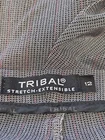 Elevate your office or business-casual look with these stylish Tribal stretch dress pants. They feature a subtle black-gray herringbone weave with fine red pinstripes, adding a classic tailored vibe with a touch of color. Details: Brand: Tribal Size: 12 Color: Gray with red pinstripe Pattern: Herringbone / subtle pinstripe Style: Flat front, side zip closure (no pockets) Material: Stretch blend (comfortable and moves with you) Rise: Mid rise Inseam: Approx. 30.5" Waist: Approx. 16" across (32" total) Length (waist to hem): Approx. 40.5" Leg opening: Approx. 9" Condition: Excellent pre-owned condition, no flaws noted Perfect for work, business casual, or dressy occasions. Pair with a blouse, blazer, or sweater for a polished professional outfit. Tribal stretch pants, women’s size 12, gray dress slacks, side zip trousers, pinstripe herringbone pants, work office attire, business casual, career wear, minimalist classic style