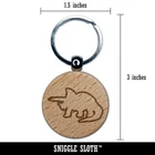 Triceratops Dinosaur Outline Engraved Wood Round Keychain Tag Charm