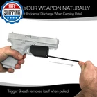 Trigger Sheath Trigger Guard Holster Black with Paracord - Minimalist Pocket Safety Trigger Cover - for Glock, Ruger, Smith and Wesson, Springfield, Taurus, Sig and More Prevent Accidental Discharge When Carrying Pistol Includes High Quality Trigger Guard and Paracord Fits Glock Models 17 - 41, 44 and 45 Anchor To Secure Object or Pull on Paracord to Easily Remove Guard Made in America The Trigger Sheath trigger guard provides a simple and safe way to carry your firearm! Trigger Sheath covers the trigger of the pistol to prevent accidental discharge when carrying concealed. Includes Trigger Sheath and length of quality paracord. To use attach the paracord to a secure object such as a belt, belt loop, nightstand, inside of a bag or purse, inside of a car, and more! When the pistol is drawn the Trigger Sheath paracord reaches full length and the Trigger Sheath removes itself. No added steps, draw your weapon naturally! This allows the user to carry a pistol both on and off body. Women can prevent accidental discharge when carrying in a purse or bag. Simple concept, simple idea, extremely effective fit and function. 100% Lifetime Warranty. Made in America. Closure Type Pull On Style Glock 17 through 41, 44 & 45 Color Black Material Nylon Warranty Description Lifetime Package Weight 0.02 Kilograms Item Weight 0.63 Ounces Suggested Users unisex-adult Model Name trigger_sheath Hand Orientation Ambidextrous Item Package Dimensions L x W x H 2.99 x 1.73 x 1.42 inches Included Components sheath and paracord Shipping Fast shipping is very important for us. Our standard US shipping service is FREE. Your order will be shipped within 2-3 business days upon full payment received. Your order will be delivered within 2-3 business days after the handling time. We only ship to the confirmed PayPal address. We reserve the right to cancel any order for any reason at any time. We are not responsible for undeliverable addresses. Returns and payment We offer a 30 days return policy from checkout winning date. We allow only PayPal as payment method FeedBack Your feedback very important to us, after you get your package and you are satisfied with our service please leave us positive feedback If you have any problem with your order / any questions please before leave any type of feedback Please visit our eBay store to check out other items for sale! Thank you for shopping at our store.