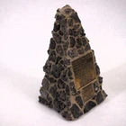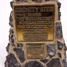 Trinity Site Monument Replica Desk Souvenir Obelisk 7" Los Alamos ☢️ Striking replica souvenir of the Trinity Site monument (the first nuclear device test location), made as a small obelisk-style desk display. The piece features a textured “lava rock” / stone-look surface with two raised plaque panels reproducing the Trinity Site text, and a felted base to protect surfaces. Displays great on a bookshelf, office, or in a Cold War / Manhattan Project collection. This example came from the estate of a nuclear scientist who worked at Los Alamos and then Oak Ridge. A scarce conversation piece, the only other example I can find is in a Museum Approx size: about 7 inches tall (see photos for scale). Base: felt pad . Marking: 979703 on the underside (as shown). 🪨 Material/Build: cast composite with stone-look texture, brass-tone plaque panels ☢️ Theme: Trinity Site / Manhattan Project / Atomic Age history 📏 Height: approx 7" 🏛️ Display: desk, shelf, office, museum-style vignette