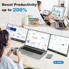 [14-inch Dual Screen for Laptop] laptop screen extender offers a 1920x1080 resolution and 72% NTSC color gamut, providing a bright and high-quality viewing experience. This monitor extender allows for independent backlight brightness adjustment, ensuring friendly eye protection and reducing fatigue. [Widely Compatible] The triple laptop screen extender fits 13"-17.3" laptops. Compatible with Windows (support 7/10 v1607 and above/11), Mac ( support M1/M2 chips, need to install the driver). If you are not sure whether your laptop is compatible, you can get in touch with us to provide you with a solution and we will reply within 24 hours. [Triple Screen Laptop Monitor Extender] This portable laptop screen extender helps you multitask effectively by opening multiple applications simultaneously. It is perfect for home offices, remote workers, frequent travelers, online meetings, IT professionals, gamers, and more. By attaching dual extended screens to your laptop, you can enhance your productivity by up to 300%. [Perfect for Travel] Upgraded travel monitor for laptop 2 screens comes with a foldable stand and portable bag. Use the adjustable kickstand to find your favorite angle for working, playing games, or watching movies. With a single cable connection, you can say goodbye to multiple data cables and messy workstations. [Important Information Before Purchase] 1. For macOS, please use the provided USB disk drive to install the driver. Windows systems typically install the driver automatically. 2. If you experience issues such as only one screen displaying, screen flickering, or a black screen, it may be due to insufficient power from the laptop. Please connect an additional power source for the screen.