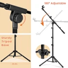 Stable Tripod Base: CAHAYA tripod boom microphone tripod legs extends further than others which can stand holds microphone securely in place. Non-slip foot cover prevent it from moving around. Carrying Bag & Universal Mic Clips: it comes with carrying bag and 2 mic clips: barrel style & clothespin style, fits for most types of microphones. Stand Height Adjustable: microphone stand height can be adjusted from 25.2”/64cm to 62.2”/158cm, perfect floor use mic stand for stage performance, speeches, meeting rooms, party, wedding, karaoke sing or live broadcasts etc. Extendable & Removable Boom Arm: boom arm extends freely within 16.9”-30.1” (43cm -76.5cm) and 360° angle rotatable through adjustment knobs which allows for easy positioning. Simply remove the boom arm and attach microphone clip to convert the mic stand into a traditional straight mic stand. Portable and Easy to Assemble: all parts could be stored in a provided carrying bag for convenient transport.