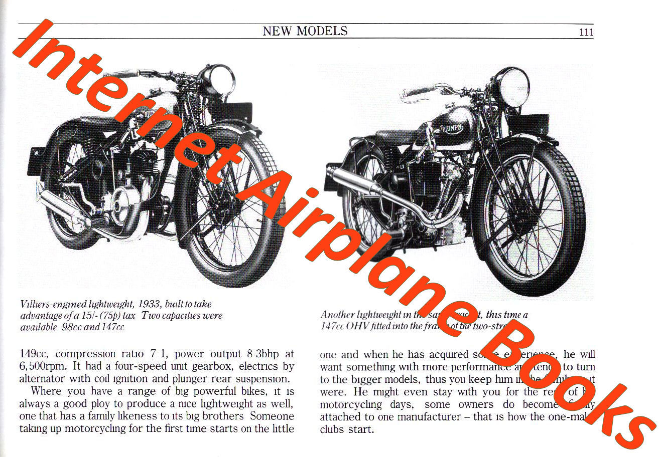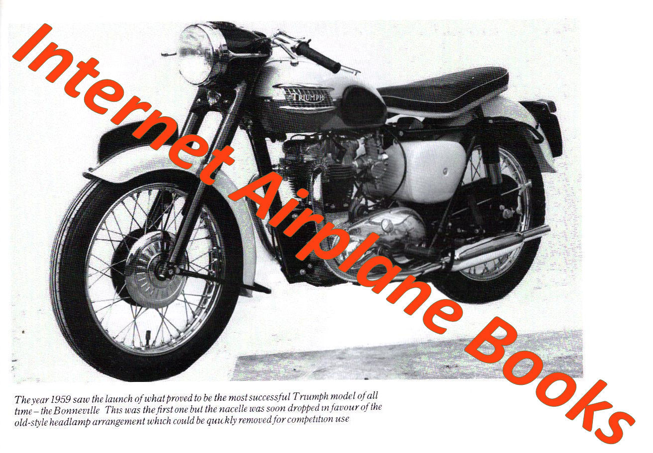 Payment | Shipping TRIUMPH MOTORCYCLES BETTMANN SPEED TWIN WW2 TURNER SINGLES TRIPLES 650 & 750 OIF TRIUMPH MOTORCYCLES BETTMANN SPEED TWIN WW2 TURNER SINGLES TRIPLES 650 & 750 OIF ENGINE CROWOOD MOTORCLASSICS SOFTBOUND BOOK by IVOR DAVIES PRE-UNIT TWINS (3T / 5T / TR5 / T100 / T100C / 6T / T110 / TR6 and T120) THE UNIT 350 AND 500 TWINS (“THE TWENTY-ONE” / 3TA / 5TA / T100SS / T90 / T100 / T100T / T100S / T100R / T100C / TR5T) 650 UNIT TWINS, PRE OIL-IN-FRAME (1963 – 1970) 6T / TR6 / T120 250 SINGLES TR25W / T25SS / T25T T150 / T150V / X75 / T160 TRIPLES 650 and 750 OIL-IN-FRAME TWINS (1971-1988, T120 / TR6 / T140V / TR7RV / T140E / T140D / T140ES / TR65 / TR7T / TR6T / TSS / TSX) ----------------------------------------------------------------------------------- Additional Information from Internet Encyclopedia The company was started by Siegfried Bettmann, who had emigrated from Nuremberg, part of the German Empire, to Coventry in England in 1893.[2] In 1884, aged 20, Bettmann had founded his own company, the S. Bettmann & Co. Import Export Agency, in London. Bettmann's original products were bicycles, which the company bought and then sold under its own name. Bettmann also distributed sewing machines imported from Germany. In 1886, Bettmann sought a more specific name, and the company became known as the Triumph Cycle Company. A year later, the company was registered as the New Triumph Co. Ltd,[1] now with funding from the Dunlop Pneumatic Tyre Company. During that year, another native of Nuremberg, Moritz Schulte, joined the company as a partner. Schulte encouraged Bettmann to transform Triumph into a manufacturing company, and in 1888 Bettmann purchased a site in Coventry using money lent by his and Schulte's families. The company began producing the first Triumph-branded bicycles in 1889. In 1896 Triumph also opened a bicycle factory in Nuremberg. In 1898 Triumph decided to extend production at Coventry to include motorcycles, and by 1902 the company had produced its first motorcycle—a bicycle fitted with a Belgian Minerva engine.[3] In 1903, after selling more than 500 motorcycles, Triumph began motorcycle production at the Nuremberg factory. During the first few years the company based its designs on those of other manufacturers, but in 1904 Triumph began building motorcycles based on its own designs, and 1905 saw the first entirely in-house designed motorcycle. By the end of that year, the company had produced more than 250. In 1907, after the company opened a larger plant, it produced 1,000 machines. Triumph had also initiated a lower-end brand, Gloria, also manufactured in the company's original plant. Confusion between motorcycles produced by the Coventry and Nuremberg Triumph companies resulted in the latter's products being renamed Orial for certain export markets. However, a company named Orial already existed in France, so the Nuremberg motorcycles were renamed again as "TWN", standing for Triumph Werke Nürnberg The beginning of the First World War was a boost for the company as production was switched to provide for the Allied war effort. More than 30,000 motorcycles—among them the Model H Roadster also known as the "Trusty Triumph", often cited as the first modern motorcycle—were supplied to the Allies. After the war, Bettmann and Schulte disagreed about planning, with Schulte wishing to replace bicycle production with cars. Schulte ended his association with the company, but during the 1920s Triumph purchased the former Hillman company car factory in Coventry and produced a saloon car in 1923 under the name of the Triumph Motor Company. Harry Ricardo produced an engine for their latest motorbike. By the mid-1920s Triumph had become one of Britain's main motorcycle and car makers, with a 500,000 square feet (46,000 m2) plant capable of producing as many as 30,000 motorcycles and cars each year. Triumph also found its bicycles demanded overseas, and export sales became a primary source of the company's revenues, although for the United States, Triumph models were manufactured by licence. The company's first automotive success was the Super Seven model, which debuted in 1928. Soon after, the Super Eight model was developed. When the Great Depression began in 1929, Triumph sold its German subsidiary as a separate, independently owned company, which later merged with the Adler company to become Triumph-Adler Company. The Nuremberg company continued to manufacture motorcycles as TWN (Triumph Werke Nürnberg) until 1957. In 1932, Triumph sold another part of the company, its bicycle manufacturing facility to Raleigh Bicycle Company. By then, Triumph had been struggling financially, and Bettmann had been forced out of the job of chairman. He retired completely in 1933. In 1936, the company's two components became separate companies. Triumph always struggled to make a profit from cars, and after becoming bankrupt in 1939 was acquired by the Standard Motor Company. The motorcycle operations fared better, having been acquired in 1936 by Jack Sangster, who also owned the rival Ariel motorcycle company. That same year, the company began its first exports to the United States, which quickly grew into the company's single most important market. Sangster formed the Triumph Engineering Co Ltd. largely directed by ex-Ariel employees, including Edward Turner who designed the 500 cc 5T Triumph Speed Twin—released in September 1937, and the basis for all Triumph twins until the 1980s.[citation needed] Contrary to popular belief, however, this was not Triumph's first parallel twin. The first was the Val Page designed model 6/1, introduced in 1933. This first twin performed well as a racer but was ultimately unpopular with the public and did not sell well.[5] After Turner arrived, with his usual brusque manner, the 6/1 ended, later to be replaced with Turner's design. The 6/1 engine was later reused, somewhat modified, as the BSA A10. In 1939, the 500 cc Tiger T100, capable o