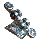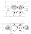 80x80x5 sliding door trolley with 2 adjustable feet Price for 1 trolley! The correct functioning of the gate requires the installation of 2 bogies and only then can we guarantee smooth and easy operation, regardless of the quality of the gate itself You have the problem that the door runs heavily or gets annoyingly stuck at some point. The cause could be a poor running trolley The guides that make the gates are not perfect. They can still twist months after installation. This can be caused by stresses during profile making and the welds themselves. Our drives are resistant to these types of problems thanks to the use of 2 torsion-independent joints on the guide rollers that compensate for the unevenness of the tread. Our customers swap out classic trolleys (with rigidly attached castors) with our trolleys if their door is jammed or damaged (a courier driving their car backwards did not notice and hit the door). Almost 100% of the time the problem is solved by replacing the cars. It happens very often that the gate is difficult to move over a certain distance. Adjusting the classic bogies will not have the desired effect in many cases, and the only solution is to heat the track and straighten it manually. This will damage the paint and galvanizing. This will only half solve the problem as the door can be “straightened” but after some time the problem will return. Don't let this type of solution fool you. Have the door installed by the manufacturer on a pendulum chassis with a joint. An investment, and you no longer have to deal with the problem of a sluggish gate. NOTE! The specified rail dimension is calculated on the outside, not in the middle of the profile. This auction is for a car for the profile 80x80x Technical Parameters Pin spacing in bench A=170mm W=70m Additional 2 bases to facilitate height adjustment of the door All elements are made of high quality steel and galvanised The cars come with bearings 6304 2RS equipped , the largest size available, which protect them very well against the accumulation of sand and other contaminants The weight of a car is 10k The load capacity of the trolleys is up to 2500k The guide rollers are made of very high quality material, with increased hardness and abrasion resistance The construction is designed to disassembled each item and can be replaced with another one if needed. In many cases, when replacing a standard bogie with an articulated bogie, it is sufficient to remove the central bolt connecting the base to the body and replace it with ours. The only condition is that the thickness of the body of the previously installed bogie is 12mm and the diameter of the center bolt is 20mm (in most cases, these parameters are met). Advantages of sleds ● the guide profile can be twisted, welded together; this does not affect the function of the carriages . The gate continues to glide easily along its entire length. ● The door itself may be warped, negligent or inaccurate; this does not affect the function of the carriages. ● the load is always evenly distributed between each of the four rollers, none of the wheels will ever be overloaded How do the drives adjust the height? When assembling the gate itself, it is necessary to adjust the carriages to different heights. Often the foundation is not evenly cast. We have our trolleys with a 2. Base equipped to facilitate the height adjustment of the gate. It is less and less problematic to put the door slightly higher by mounting it as shown in Figure 9 than to forge the foundation if the gap under the door is too large. Drill holes in the bench, e.g. for m1 pins. Attach them permanently, e.g. B. with a chemical anchor. Attach the first base directly to the benches. The second base is used to bring the door to the correct height Fitted with nuts from top Why these trolleys? Our many years of experience in the fence industry have led us to develop a cart with such possibilities. Many times we have installed a gate manufactured with the utmost care and despite tedious adjustment of the carriages, the gate moved only with resistance, e.g. from the middle of the gate to the end. After adjusting the drives in this position, the gate moved slightly on this section, on the section from the center to the opening where it had previously moved slightly, but with resistance. This is a typical behavior of a gate with a warped rail profile or the gate itself. Such a door cannot be adjusted to normal trolleys! What causes deformation of the guide rail and the entire door? The standard and most common door profile (channel profile semi-closed 80 x 80 x 5 slot 27.5) is cheap and solid. Unfortunately, during production, stresses are introduced into the steel structure by rolling, which together with the welds distort the profile. The stresses are easy to see when you cut through the profile and the ends “loosen” due to the stresses. Prefabricated profiles with a "twist" are also common (Fig. 4). A twist of only 5 degrees completely blocks the gate on normal trolleys and is virtually invisible at a length of 6 m. The door profiles of the various manufacturers are usually produced by rollers. A press brake does not introduce torsional stresses, but is much more expensive. The deformation of the entire gate, which affects its movement, consists in the rotation of its plane, so that the guide profile and channel of the guide roller are not flush (Fig. 5). In this case, the guide roller pulls the door to one side or the other of the cart. A common problem, especially with long doors Construction Since the carriages are designed for heavy loads, the guide rollers are metal only and profiled so that the load is always transferred to the center of the bearing. They come with hermetically sealed , equipped waterproof bearings that are sealed with a metal-rubber seal (and not just a metal plate) to ensure that dust and moisture do not get inside and the grease contained does not age. The bearing size is the largest th