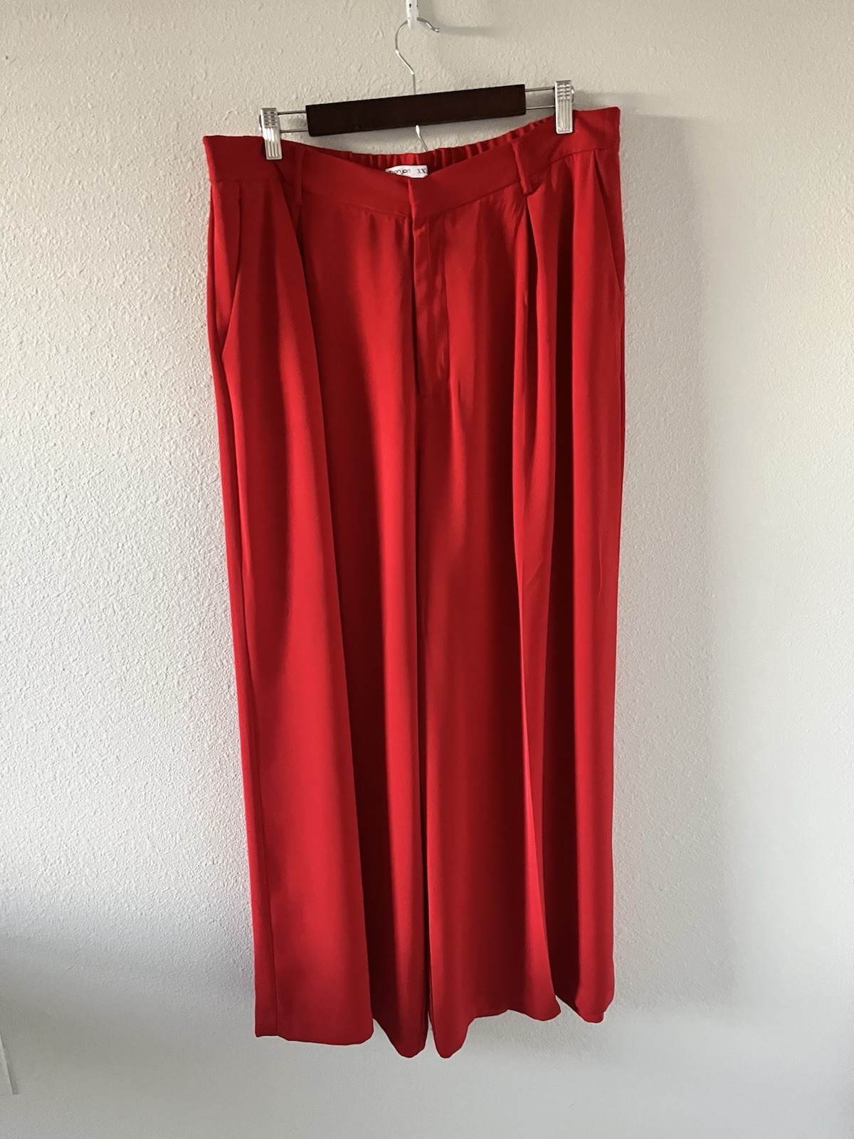 🍃Plus Size Tronjori RED Palazzo Pants; Size XXL 🍃Flowy,Comfy Fabric in Medium Weight 🍃1940s style HIGH WAIST; Loose Wide Leg Flattering Pants,Zip Closure with Hook and Eye,Back Elastic Real Waistband with Belt Loops,Front Pleats ,Back Darts,Side Slant Pockets Measurements: Waist: 36” Hips: 48” Inseam: 27” Length: 41.5” Excellent Condition Thanks for shopping Le Chat Charmant 🐈⬛