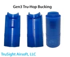 TruSight Airsoft Gen3 Tru-Hop Kit The Tru-HopTM is a high quality, high performance, all weather hop-up bucking designed to significantly boost range and accuracy in your AEG or AEG-compatible replica. This hop-up bucking is easily installed and requires zero† modification. Additionally, this bucking performs consistently in a broad temperature range (-50°C to 230°C/ -58°F to 446°F). You can expect the same range and accuracy regardless of playing in cold snow or in a hot desert. Lastly, the material used in this hop-up bucking has high durability and allows the Tru-HopTM to withstand hundreds of thousands of rounds.† Most inner barrels are compatible. Please refer to the “Compatibility” section below.Tru-HopTM contact patches have two main advantages:- Increased friction over the top of the BB, and- Muzzle energy retentionThis means you can over-hop virtually any weight BB without experiencing signification energy loss. The Tru-HopTM bucking does this by allowing the BB to pass more freely during firing since little hop-up pressure is required. The air loss at the nozzle-bucking interface is therefore reduced and more energy is retained during firing. This translates to farther range at your optimal flight path.Both generations were designed to boost the accuracy of your airsoft gun. Hours of trial-and-error testing ensures compatibility of the bucking with numerous BB brands. Other bucking features were thoroughly studied as well.Simply put, every aspect of Tru-HopTM was designed and tested to yield the maximum performance from your airsoft gun.Tru-Hop Concave SpacerTruSight Airsoft has also designed a companion hop-up spacer that replaces the stock rubber cylinder in a typical hop-up unit. Although this spacer is not required, the hop-up effect of the Tru-HopTM bucking will be maximized with full area contact. Like the bucking itself, this spacer was designed in-house and fine tuned through experimentation. The end result is a product that stands out as an individual contributor to performance. Installation Instructions Compatibility Due to the shape of the internal contact patch, there are some barrel requirements that must be met. This bucking was designed to be compatible across a large spectrum of barrel brands. However not all barrels will be compatible. To check for compatibility, please ensure that the barrel window meets the minimum dimensions shown below. Ideally the corners of the barrel window should be squared, however the TruSight Airsoft team has tested some rounded corner barrels with success. We recommend using a light film of silicone oil on the portion of the barrel shown above to aid in installation. Likewise, coating the Tru-HopTM bucking with a light film of silicone oil will make sliding the barrel and bucking assembly into the hop-up chamber easier. Tru-HopTM buckings have a 500 – 1000 round break-in period before maximum performance is achieved. TruSight Airsoft Gen3 Tru-Hop Kit The Tru-HopTM is a high quality, high performance, all weather hop-up bucking designed to significantly boost range and accuracy in your AEG or AEG-compatible replica. This hop-up bucking is easily installed and requires zero† modification. Additionally, this bucking performs consistently in a broad temperature range (-50°C to 230°C/ -58°F to 446°F). You can expect the same range and accuracy regardless of playing in cold snow or in a hot desert. Lastly, the material uséd in this hop-up bucking has high durability and allows the Tru-HopTM to withstand hundreds of thousands of rounds. † Most inner barrels are compatible. Please refer to the “Compatibility” section below. Tru-HopTM contact patches have two main advantages: - Increased friction over the top of the BB, and - Muzzle energy retention This means you can over-hop virtually any weight BB without experiencing signification energy loss. The Tru-HopTM bucking does this by allowing the BB to pass more freely during firing since little hop-up pressure is required. The air loss at the nozzle-bucking interface is therefore reduced and more energy is retained during firing. This translates to farther range at your optimal flight path. Both generations were designed to boost the accuracy of your airsoft gun. Hours of trial-and-error testing ensures compatibility of the bucking with numerous BB brands. Other bucking features were thoroughly studied as well. Simply put, every aspect of Tru-HopTM was designed and tested to yield the maximum performance from your airsoft gun. Tru-Hop Concave Spacer TruSight Airsoft has also designed a companion hop-up spacer that replaces the stock rubber cylinder in a typical hop-up unit. Although this spacer is not required, the hop-up effect of the Tru-HopTM bucking will be maximized with full area contact. Like the bucking itself, this spacer was designed in-house and fine tuned through experimentation. The end result is a product that stands out as an individual contributor to performance. Installation Instructions Compatibility Due to the shape of the internal contact patch, there are some barrel requirements that must be met. This bucking was designed to be compatible across a large spectrum of barrel brands. However not all barrels will be compatible. To check for compatibility, please ensure that the barrel window meets the minimum dimensions shown below. Ideally the corners of the barrel window should be squared, however the TruSight Airsoft team has tested some rounded corner barrels with success. We recommend using a light film of silicone oil on the portion of the barrel shown above to aid in installation. Likewise, coating the Tru-Hop TM bucking with a light film of silicone oil will make sliding the barrel and bucking assembly into the hop-up chamber easier. Tru-Hop TM buckings have a 500 – 1000 round break-in period before maximum performance is achieved. × × × × × Buy now and save! Shipping info Click the Shipping & Payments tab above the listing description