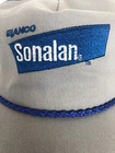 VINTAGE ELANCO SONALAN SNAPBACK RETRO HAT ADULT SIZED GREY AND ROYAL BLUE WITH ROYAL BLUE MESH BLUE FRONT ROPING QUALITY MADE IN THE USA