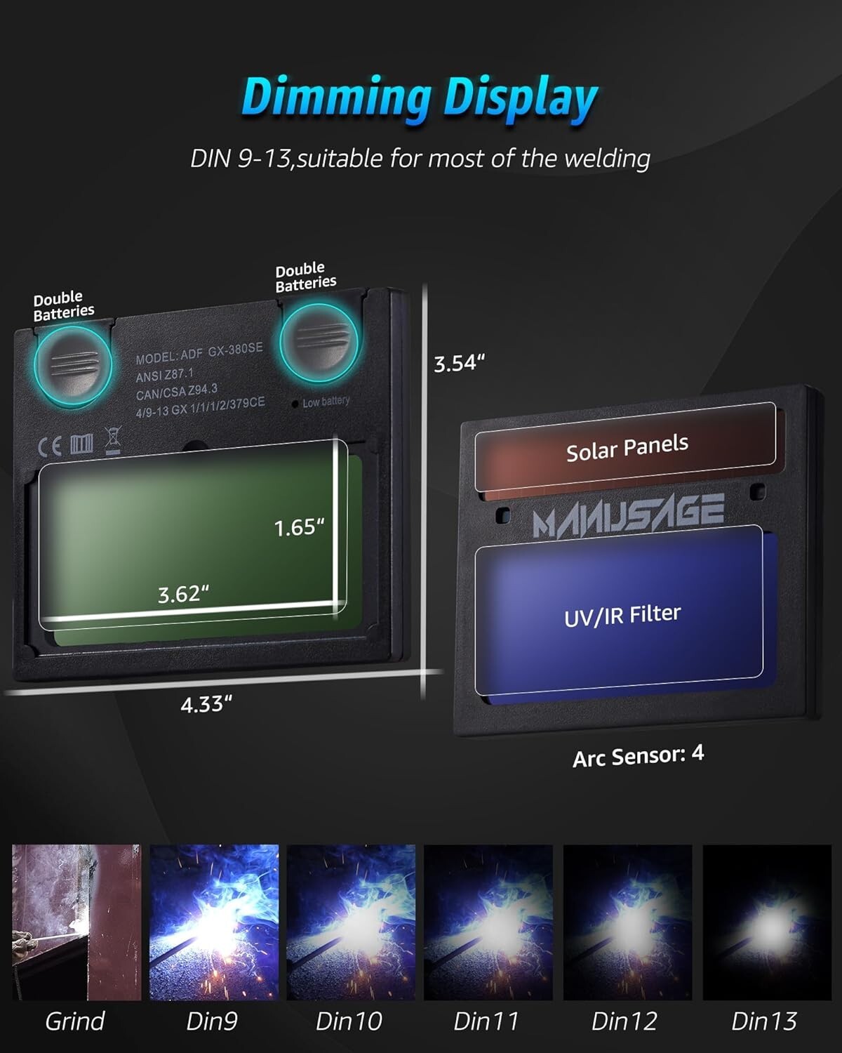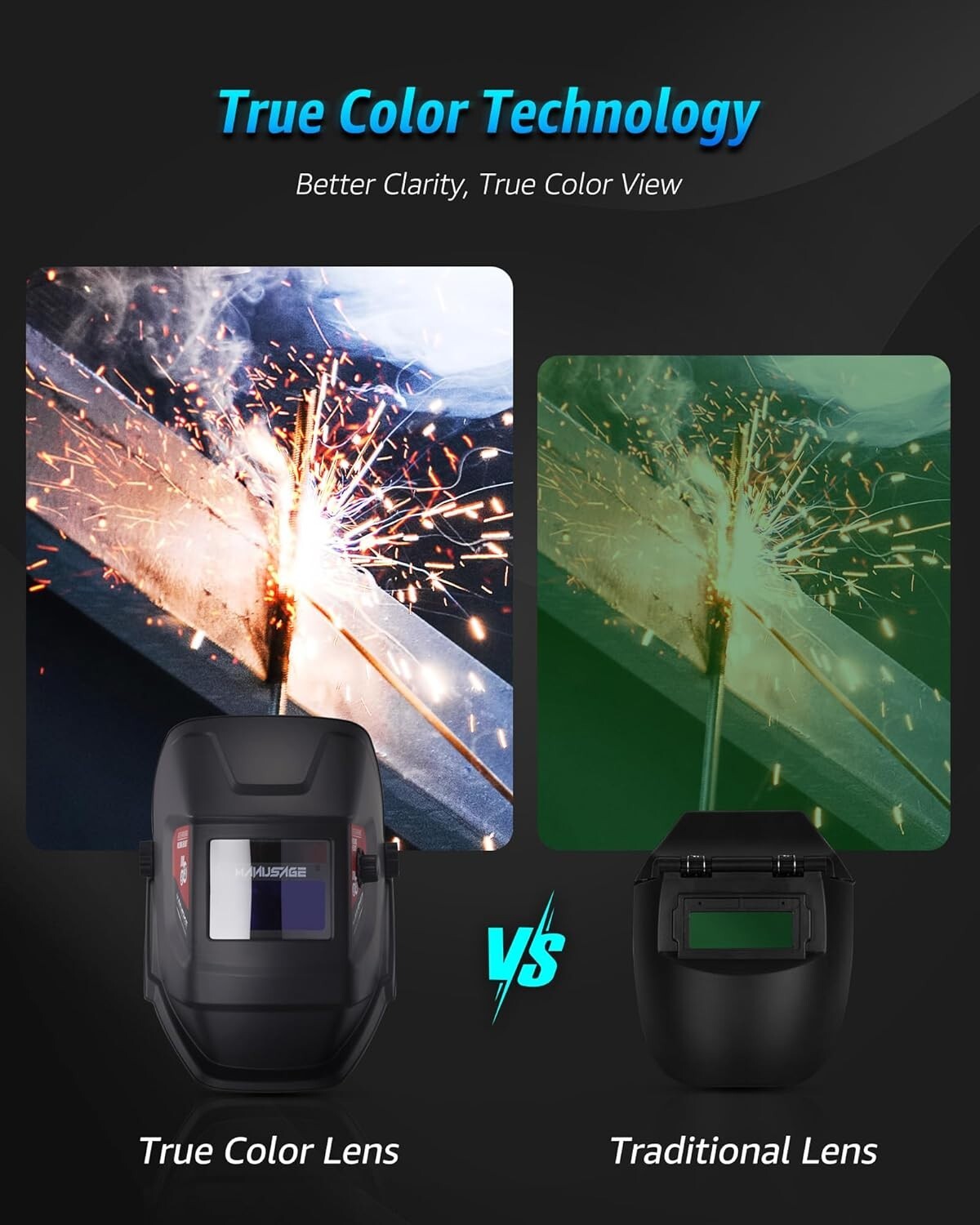 Auto Darkening Welding Helmet with True Color, Solar Power, 4 Sensors