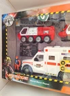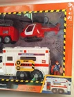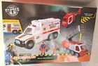 New in Sealed Box all original; never been opened: "True Heroes, Tactical Rescue Unit, Rescue Squad Playset." Set includes 3 Vehicles; Ambulance with lights and sound, Rescue Helicopter, Firetruck with extendable ladder, 2 fire-fighters, and grid of tools. In working condition; "You can test on side of Ambulance." For ages 3,+ Payment to be received immediately. Item to be shipped as soon as payment has cleared, and mailing center is open.