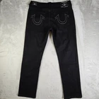 True Religion Geno No Flap SN Relaxed Slim Fit Jeans Men 36x32 Body Rinse Black ACTUAL FIT: 36X31.25" MSRP: $149 PLEASE SEE PHOTOS FOR EXACT DETAILS AND CONDITION OF THE ITEM. ALL MEASUREMENTS ARE TAKEN FLAT. PLEASE COMPARE MEASUREMENTS OF SIMILAR ITEM THAT YOU OWN TO ENSURE CORRECT FIT. WAIST: 18" HIPS: 22" INSEAM: 31.25" RISE: 12" CUFF WIDTH: 8" CONDITION: NEW WITH TAGS SHIPPING: U.S. SHIPPING IS USPS GROUND ADVANTAGE. INTERNATIONAL SHIPPING IS Ebay GLOBAL SHIPPING PROGRAM HANDLING TIME: 2 Full business days. Usually ships next day after purchase excluding weekends or holidays. FEEDBACK: Please leave feedback once you receive the item. If there is an issue with the item, please contact me and let me correct the issue before leaving feedback