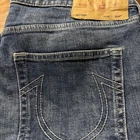 The True Religion Geno Big T Relaxed Slim Fit Jeans for Men in size 36x32 are a stylish and comfortable choice for everyday wear. Featuring a classic denim fabric with a mid-rise and 5-pocket design, these jeans have a relaxed slim fit that is both flattering and easy to move around in. The medium wash and solid blue color make them versatile for any season, while the belt loops and zip/button closure add a touch of convenience. Perfect for the modern man looking for a trendy American-inspired look with a hint of hip hop style. Another pair that’s an excellent used condition. The measurements are. Waste 36 inches Rise 11 inches Inseam 34 inches