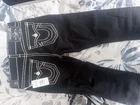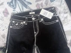 The True Religion Men's Jeans Size 32 in Black Rinse Ricky Super T Flap are a stylish and versatile addition to any man's wardrobe. Made from cotton denim with a mid-rise and a relaxed fit, these straight-cut jeans feature a classic 5-pocket design with a zip closure and signature logo accents. With a 34-inch inseam and a 32-inch waist size, these jeans are perfect for all seasons and can be easily machine washed for care. Perfect for the fashion-forward man looking for a comfortable and on-trend piece to wear.