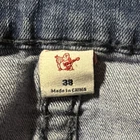 The product is a pair of True Religion Men's Ricky Relaxed straight Jeans in size 38x32.5. The jeans feature a light wash and a blue color, making them versatile and easy to style. The relaxed fit and straight leg style provide a comfortable and classic look that is perfect for everyday wear. Made from high-quality fabric, these jeans are durable and stylish, and the True Religion brand ensures a premium level of craftsmanship and design. VERY GOOD CONDITION WAIST IS 38 INCHES RISE IS 11 in Inseam is 32 inches