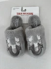 True Religion Women's GRAY Glitter Furry Slippers Small 5-6 Horseshoe Logo