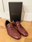 These shoes represent a throwback to the golden age of Gucci...the Tom Ford era. These vintage leather loafers are a perfect balance of 70s-inspired glam and present-day eccentricity. Although these shoes have only been worn a handful of times, they do show wear as indicated in the photos. Leather soles and lining. Size 8.5 = US 9. Though these shoes are my size, they do run a little long. This item will ship with a Gucci shoe box, but please note, it is not the original shoe box for this particular style. Feel free to reach out with any questions or for additional photos.