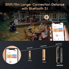 [Charge for 5 mins, Cook for 5 hrs] The grill thermometer dock has a built-in 500mAh lithium battery and can fully charge the probe in just 25 minutes. the wireless thermometer can be used continuously for 25 hours, even in high-temperature environments, making it particularly suitable for overnight cook. This thermometer for cooking is versatile and ideal for use in grills, smokers, ovens, frying pans. (Remember to insert it deep enough and beyond the safe cooking line every time you grill.) [Wireless Meat Probe & Bluetooth 5.1 Connection] This wireless meat thermometer frees you from tangled wires and liberalizes your operation. The advanced Bluetooth 5.1 technology enables you to remotely control and monitor cooking progress at any time over 300ft long distance. Moreover, this meat thermometer can locally store 30 minutes of offline data and automatically synchronize with the App after a Bluetooth connection without lost data. [2-In-1 Temperature Probe] Two temperature sensors at both ends allow the probe to get oven and food temperatures simultaneously. It supports a food temperature range of -10~100℃/14~212℉ and an ambient temperature range of 0~300℃/32~572℉, with a measurement accuracy of ±1℃/±1.8℉. Precise temperature control makes every cut of meat you grill perfectly to your taste, making every meal of daily life a celebration. (Remember to insert it deep enough and beyond the safe cooking line every time you grill.) Package Contents Charging Case*1 Wireless Probe*1 USB-C Charging Cable*1 User Manual*1 You can create, monitor, and optimize the cooking progress through the INKBIRD app, making cooking smarter and simpler. The human-centered App has a preset USDA recommended meat taste list that contains 26 types of meat with custom taste preferences and cooking time and features multiple alarm functions like target temperature alarm, target temperature pre-alarm, high/low-temperature alarm, and count-up/down timer to prevent overcooking and undercooking. [IP67 Waterproof Rating & High-Quality Material ] The food-grade stainless steel probe is rust-resistant and corrosion-resistant and will not affect the original taste of food. The zirconia ceramic handle has high resistance to wear and heat and can withstand a high-temperature environment for a long time. Moreover, the probe has an IP67 high waterproof rating, making it easier to clean and dishwasher safe. ******************************************************************************** *Model: INT-11P-B *Connection Method: BLE 5.1 *Bluetooth Connection Distance: 300ft/91m (without obstacles, for reference only) *Probe Waterproof Rating: IP67 (dishwasher safe) *Sensor Number: 2 sensors of the probe for measuring food temperature and ambient temperature *Probe Measurement Accuracy: ±1℃/±1.8℉ *Temperature Measurement Range: *Food Temperature:-10~100℃/14~212℉ *Ambient Temperature:0~300℃/32~572℉ *Probe Battery Life: 25 hours at high temperature; 7 days at room temperature *Probe Charging Time: 25 minutes for full charge *Probe Response Time: about 3 seconds *Probe Calibration: ±7℃/±12℉ [Charge for 5 mins, Cook for 5 hrs] The grill thermometer dock has a built-in 500mAh lithium battery and can fully charge the probe in just 25 minutes. the wireless thermometer can be used continuously for 25 hours, even in high-temperature environments, making it particularly suitable for overnight cook. This thermometer for cooking is versatile and ideal for use in grills, smokers, ovens, frying pans. (Remember to insert it deep enough and beyond the safe cooking line every time you grill.) *********************************************************************** ****************************************************************** [Wireless Meat Probe & Bluetooth 5.1 Connection] This wireless meat thermometer frees you from tangled wires and liberalizes your operation. The advanced Bluetooth 5.1 technology enables you to remotely control and monitor cooking progress at any time over 300ft long distance. Moreover, this meat thermometer can locally store 30 minutes of offline data and automatically synchronize with the App after a Bluetooth connection without lost data. ======================================================== [2-In-1 Temperature Probe] Two temperature sensors at both ends allow the probe to get oven and food temperatures simultaneously. It supports a food temperature range of -10~100℃/14~212℉ and an ambient temperature range of 0~300℃/32~572℉, with a measurement accuracy of ±1℃/±1.8℉. Precise temperature control makes every cut of meat you grill perfectly to your taste, making every meal of daily life a celebration. (Remember to insert it deep enough and beyond the safe cooking line every time you grill.) Package Contents Charging Case*1 Wireless Probe*1 USB-C Charging Cable*1 User Manual*1 You can create, monitor, and optimize the cooking progress through the INKBIRD app, making cooking smarter and simpler. The human-centered App has a preset USDA recommended meat taste list that contains 26 types of meat with custom taste preferences and cooking time and features multiple alarm functions like target temperature alarm, target temperature pre-alarm, high/low-temperature alarm, and count-up/down timer to prevent overcooking and undercooking. [IP67 Waterproof Rating & High-Quality Material ] The food-grade stainless steel probe is rust-resistant and corrosion-resistant and will not affect the original taste of food. The zirconia ceramic handle has high resistance to wear and heat and can withstand a high-temperature environment for a long time. Moreover, the probe has an IP67 high waterproof rating, making it easier to clean and dishwasher safe. ********************************************************************** ******************************************************************************** Model: INT-11P-B Connection Method: BLE 5.1 Bluetooth Connection Distance: 300ft/91m (without obstacle