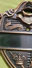 This stunning bronze door plate adds a touch of vintage elegance to any entrance. The intricate Latin inscription gives it a classic, timeless look. Despite being preowned, it appears practically new with only minor signs of age. The weight and craftsmanship feel premium, making it a standout piece. Perfect for those who appreciate historical charm! Payment and shipping terms are straightforward—just be sure to check the photos carefully before bidding. A fabulous find for antique lovers!