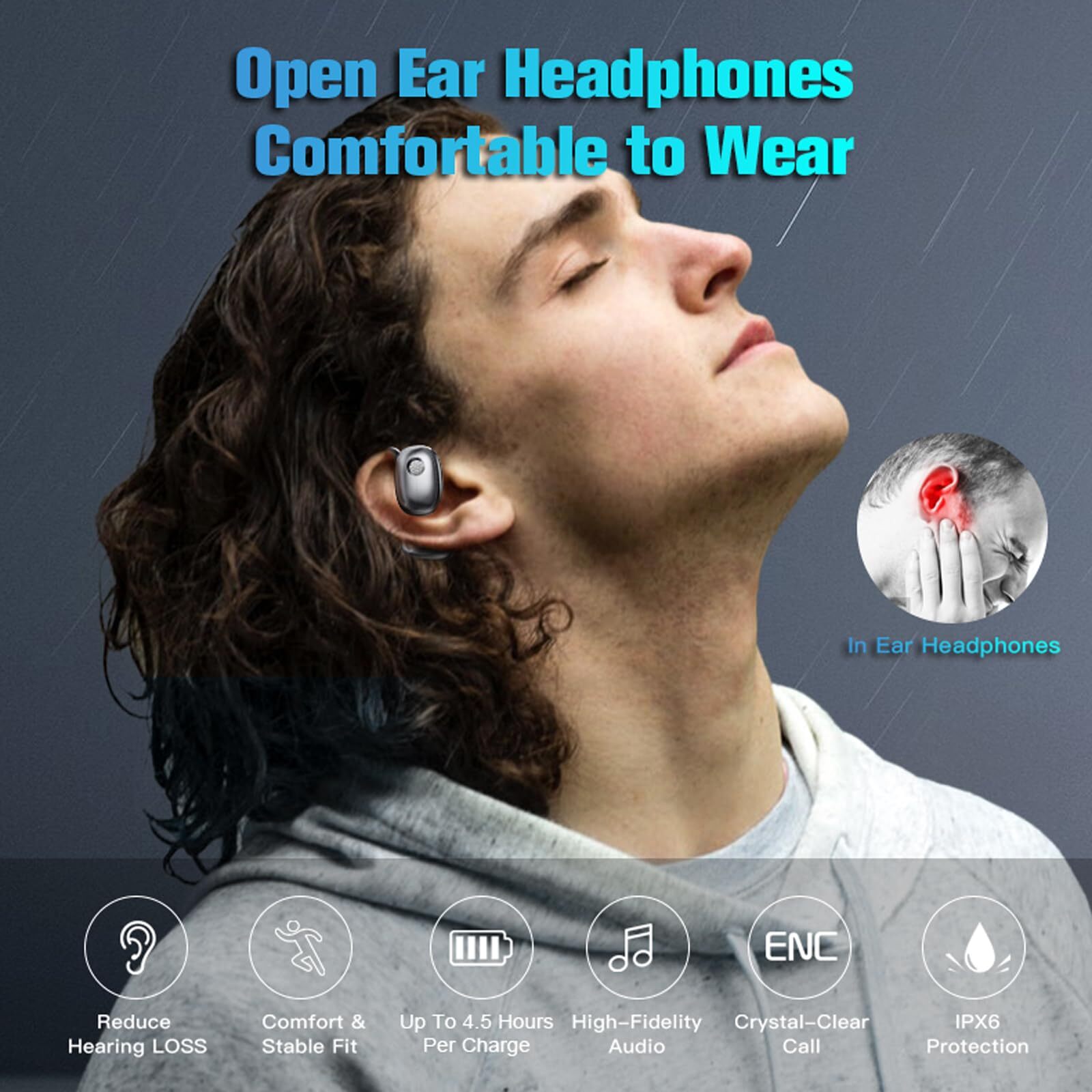 Ttbesmi Open Air Over The Ear Earbuds Outer Ear Headphones Wireless Bluetooth Bone Air Conduction Around Ear Out of Ear Earbuds with Earhooks Conducting Headphones OWS Hanging Earphones 5.4 Bluetooth đ§ăOut of Ear Headphones That Don't Go In EarăThe open ear design of the over the ear earbuds allows you to feel your surroundings at all times. When you wear open-ear earbuds during outdoor sports, you can always keep an eye on your surroundings and be very safe. đ§ăComfortable & Lightweight HeadphonesăOWS hanging earphones 5.4 bluetooth are so light only 0.3oz that you'll forget they're there after wearing them for long time. The over ear earbuds wireless without restraint, skin-friendly and non-allergic ABS material is more comfortable to wear. Air-bone conduction headphones make you a burden-free wearing. đ§ăUnrivaled Stereo Sound & No Sound LeakageăThese open ear earbuds utilize breakthrough directional sound transmission technology, which transmits audio losslessly into the ear and combines with digital sound enhancement technology to deliver 360° panoramic stereo sound as if you were at the performance. It's the perfect sports companion. đ§ăCrystal-clear Callsă Enhanced noise reduction technology through ENC algorithm. Dual microphone directional radio allows you to talk clearly even in noisy environments, as if you were talking to someone face-to-face. đ§ăWaterproof and SweatproofăNano waterproof coating, even after exercise sweaty out of ear headphones is not afraid of damage, gently wipe, still new! Open ear headphones wireless bluetooth. Stay in close contact with your surroundings at all times, best earbuds for working out. Features 1.Open ear earbuds are made of non-slip& skin-friendly ABS, suitable for sports outdoor and daily use, will comfortable and stable to wear for a long time. 2.Through IPX5 waterproof Sweatproof nano-coating, the wireless headphones provide protection from sweat/ rainstorm, which fit for jogging, hiking, gym exercises, fitness, etc. 3.Open ear headphones are equipped with dual noise-canceling microphone for crystal-clear calls on both ends. 4.Fully charged Bone conducting headphones can listen to music 4 hours. 5.The new upgraded Bluetooth 5.4 chipïŒthe wireless connection is faster and more stable. Product Specification Type: Open-ear Bluetooth headphones Bluetooth specification:V5.4 Transmission distance: About 10m/33 feets(barrier-free) Play time: About 4.5 hours (50% volume) Charging timeïŒ1 hours Charging case Battery capacity: 400mAh Waterprof :IPX5 Charging port:USB C Note: 1. Please read the user manual carefully before use. 2. If you receive a defective product or have any questions during use, please feel free to contact us. Package: 1 x Workout Open Ear Headphones 1 x USB-C cable 1 x User manual 1 x Exquisite packaging box Shipping We offer FREE shipping on all orders! We ship within Three business days of payment, usually sooner. We use a selection of shipping services such as UPS, FedEx, USPS etc. We only ship to the lower 48 states, no APO/FPO addresses or PO Boxes allowed. Local pickups and combined shipping options are not provided at this time. Return You can return a product for up to 30 days from the date you purchased it. Any product you return must be in the same condition you received it and in the original packaging. Please keep the receipt. Payment We accept payment by any of the following methods: PayPal Please pay as soon as possible after winning an auction, as that will allow us to post your item to you sooner! Feedback Customer satisfaction is very important to us. If you have any problem with your order, please contact us and we will do our best to make you satisfied. Contact Us If you have any queries, please contact us via ebay. We usually respond within 24 hours on weekdays. Please visit our eBay store to check out other items for sale! Thank you for shopping at our store.