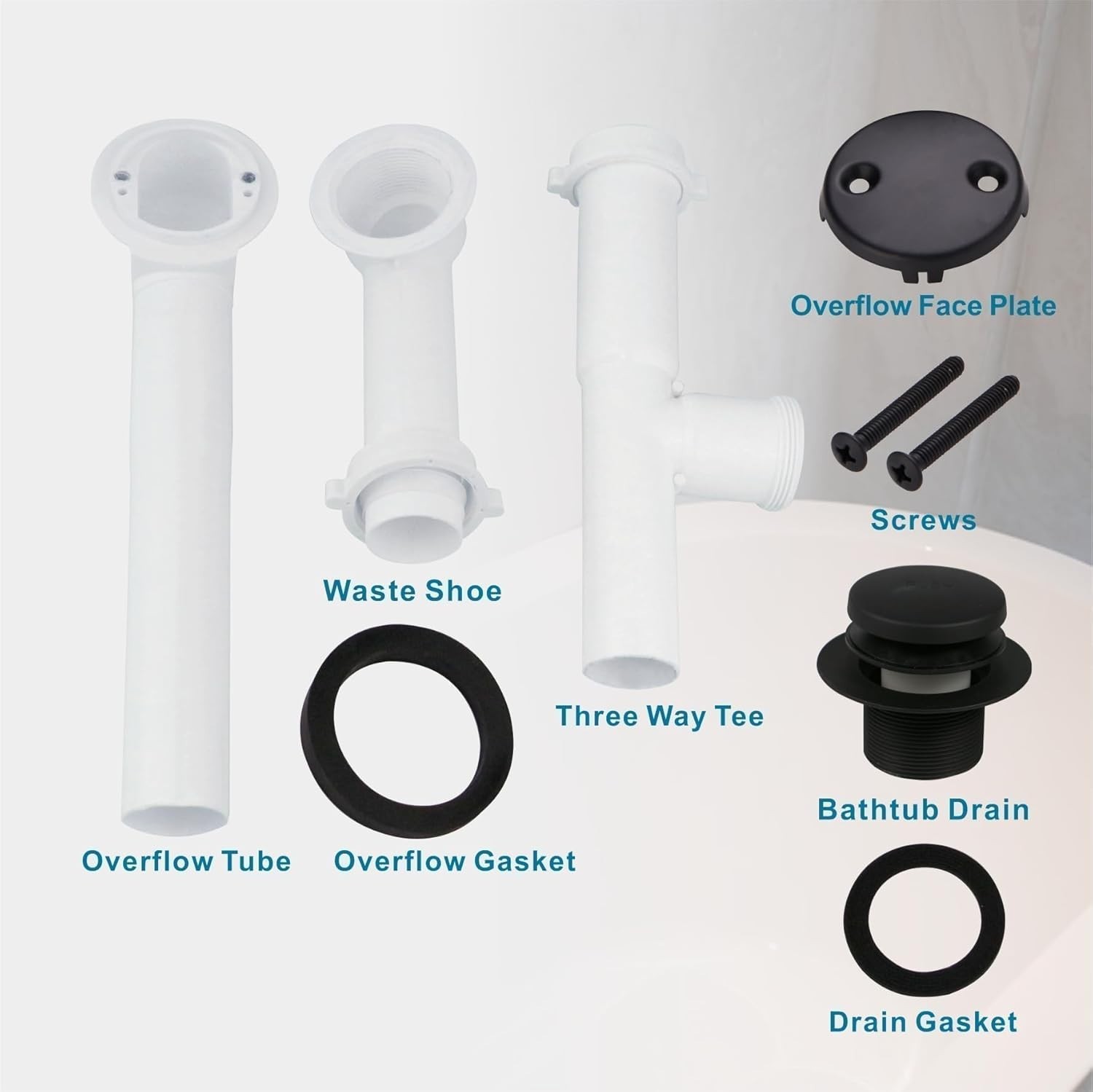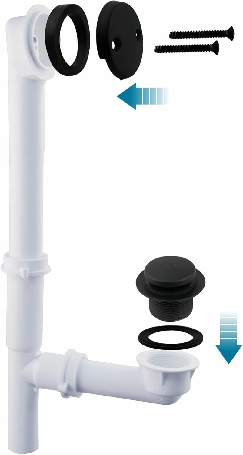 Description: • 1-1/2″ tubular PVC drain pipe • Welsan Tip-Toe bathtub drain stopper • Touch-Toe bath plug waste • Overflow face plate with matching screws • Installation hardware ✨ Features: • Available in Matte Black or Brushed Nickel finish • Modern, clean look for contemporary bathrooms • Tip-Toe stopper – press to open or close drain • Touch-Toe bath plug for smooth drainage control • Fits standard U.S. 1-1/2″ bathtub drain systems • Durable PVC pipe with metal stopper & overflow parts 📏 Specifications: • Pipe Diameter: 1-1/2″ • Finish Options: Matte Black / Brushed Nickel • Material: PVC pipe + metal components ⚠️ Notes: • Faucet NOT included • Please confirm drain size before purchase • Professional installation recommended if unfamiliar 📩 Feel free to message with any questions. Fast shipping & secure packaging guaranteed!