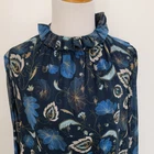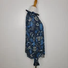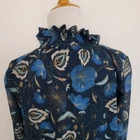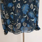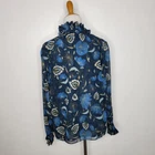 Tuckernuck Nouveau Floral Sadie Blouse Size small 100% polyester Machine wash Pullover styling High neck Victorian ruffle neck Long sheer sleeves with elasticized cuffs Relaxed fit Lined except sleeves Midnight blue with floral print in gold, cream, brown, blue Approx. lay-flat measurements: Length: ~23.5" Pit to pit: ~20" Sleeves: ~24" Excellent pre-owned condition. No notable flaws/signs of wear
