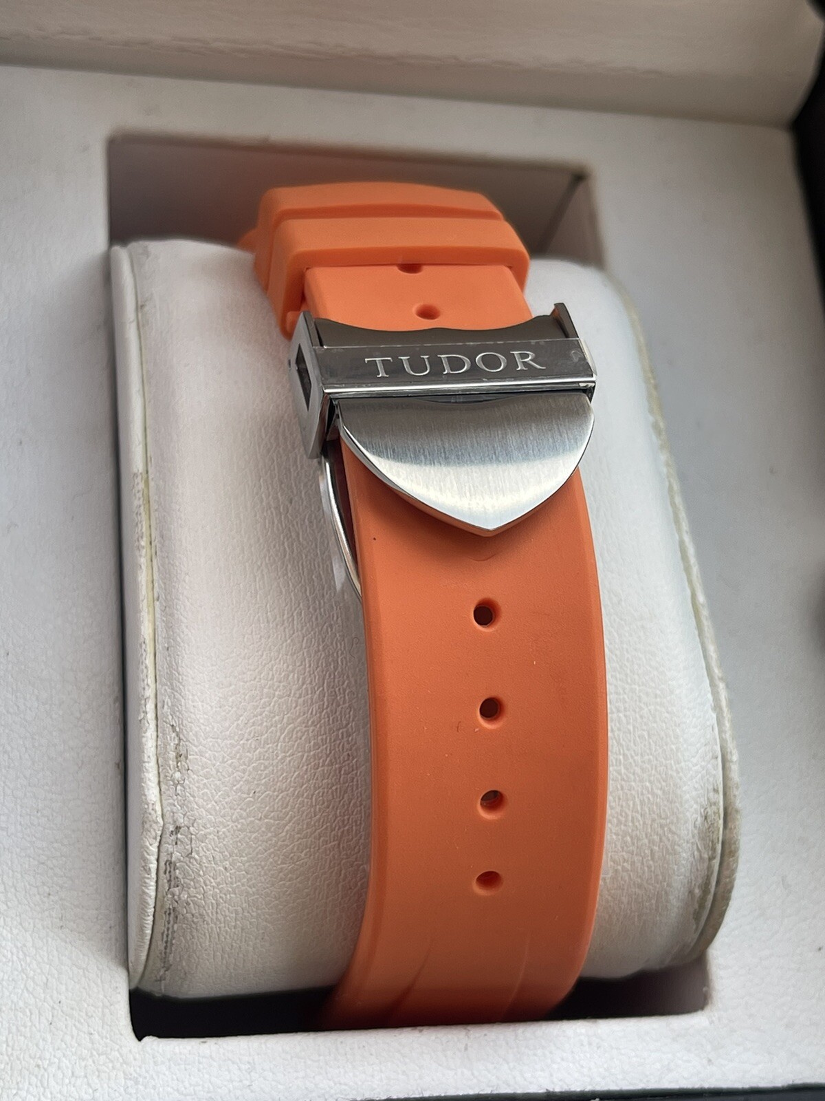 Up for grabs: New orange rubber for Tudor black bay GMT strap stainless deployment claps with 22mm lug ends Suitable for Tudor black bay watches with width 22mm Very limited quantity, when it’s gone its GONE! Grab a quick BARGAIN! We do have blue, green, red and black colour as well for sale Please note that the strap doesn’t come with box Message me for any enquiries! Thanks for viewing
