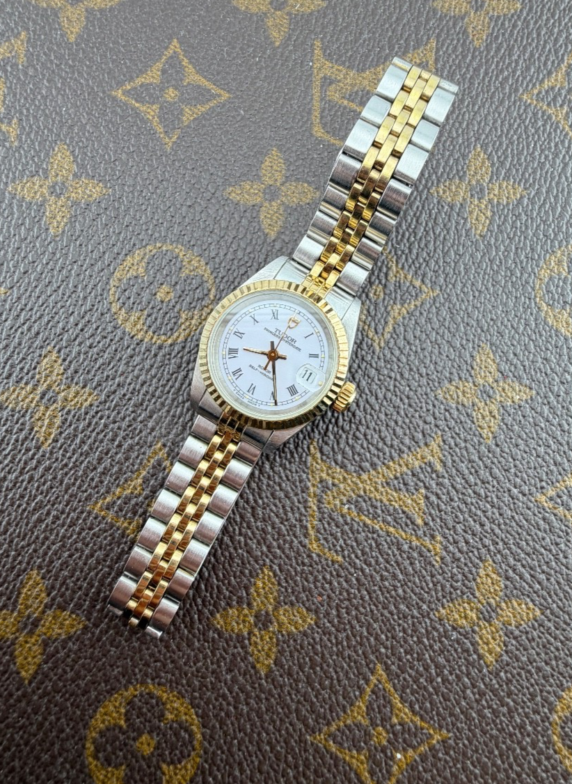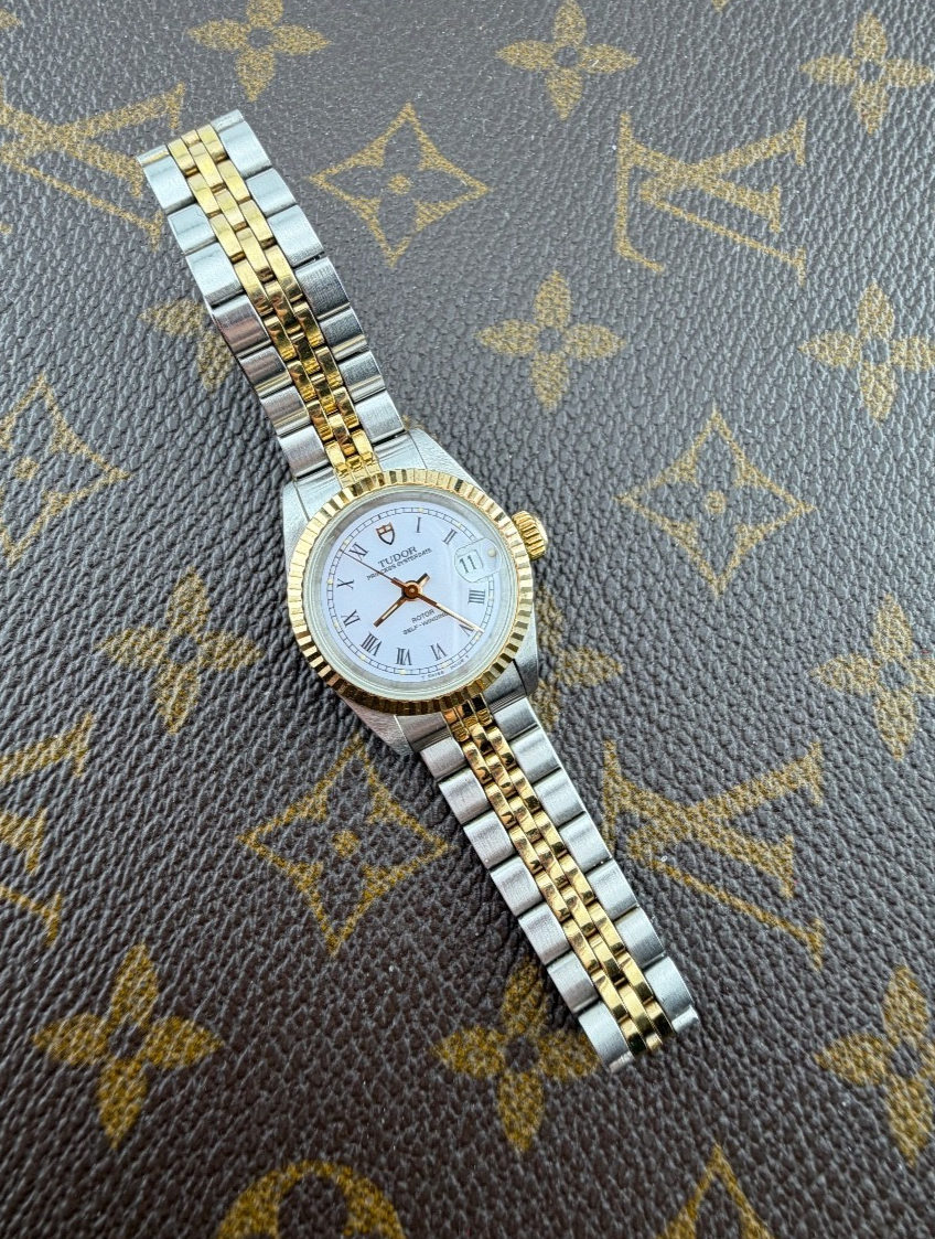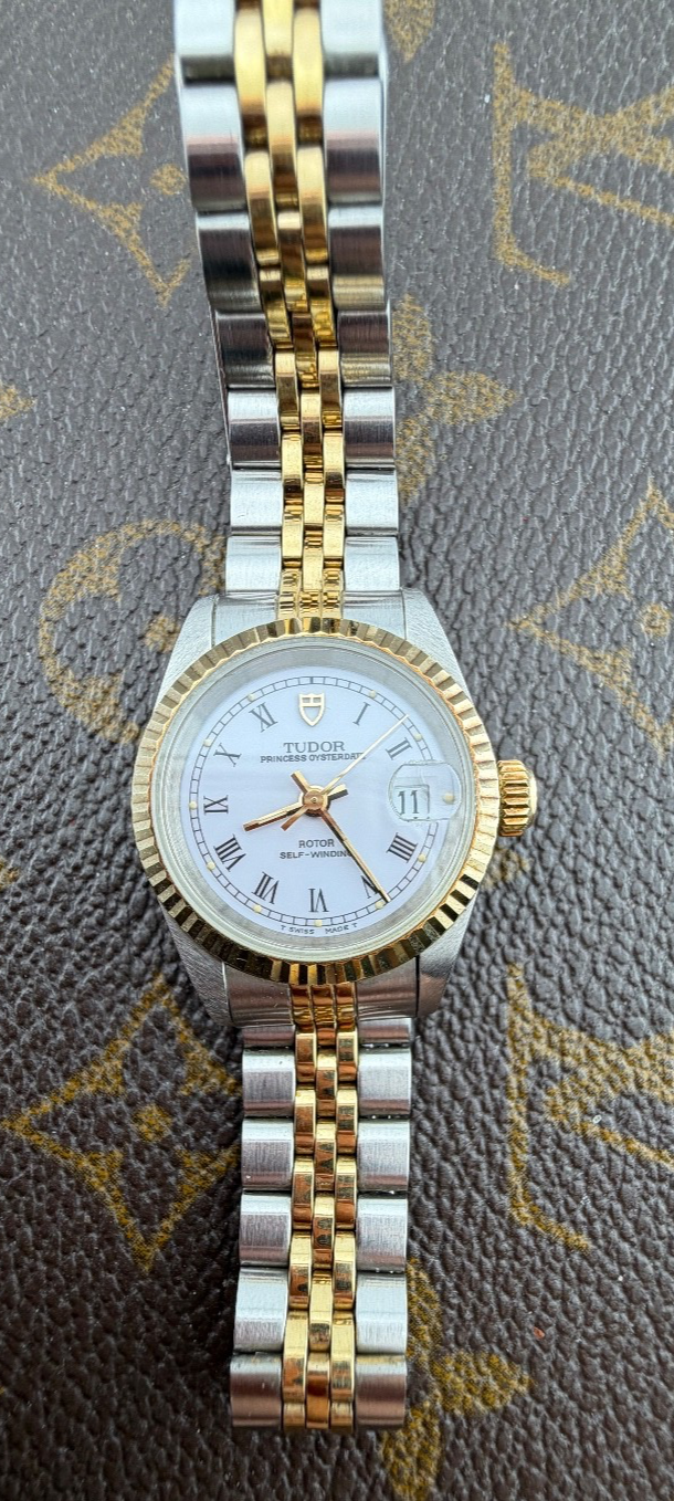 PROPONIAMO; -Marca: TUDOR PRINCESS LADY -Cassa: ACCIAIO INOX DA 25MM , FONDELLO A VITE ORIGINALE -Movimento :ORIGINALE TUDOR BASE ETA AUTOMATICO -Vetro:ZAFFIRO -Corona:ROLEX IN ORO ORIGINALE -Ghiera: ORO GIALLO ZIGRINATA -Tasti:NO -Quadrante:NIANCO ORIGINALE , NUMERI ROMANI TRIZIO -Lancette: ORO GIALLO ORIGINALI TRIZIO -Cinturino/Bracciale: BRACCIALE ORIGINALE , FINALI 595 , CLASP 6248 -Scatola e documenti: NOSTRA POCHETTE IN VELLUTO COMPRESA + GARANZIA ORIGINALE -Condizioni :OTTIME -Revisionato:SI -Uomo/donna/unisex:DONNA PER QUALSIASI DUBBIO CONTATTATEMI ,RISPONDEREMO IL PRIMA POSSIBILE