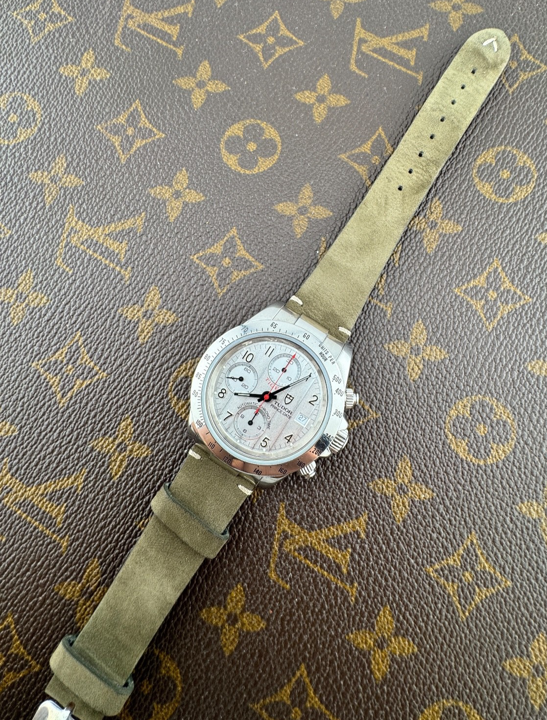 PROPONIAMO; -Marca: TUDOR CHRONO-TIME -Cassa: ACCIAIO DA 40MM , FONDELLO A VITE ORIGINALE -Movimento :ORIGINALE TUDOR , BASE 7750 ORIGINALE -Vetro:ZAFFIRO , CON LENTE -Corona:ORIGINALE A VITE -Ghiera:FISSA ORIGINALE CON SCALA INCISA -Tasti: ORIGINALI A VITE -Quadrante: SILVER (TIGER) , RARO -Lancette: ORIGINALI -Cinturino/Bracciale: PELLE GENERICO DA 20MM , CHIUSURA DEPLOYANTE -Scatola e documenti: NOSTRA POCHETTE IN VELLUTO COMPRESA -Condizioni : OTTIME -Revisionato:SI -Uomo/donna/unisex:UOMO PER QUALSIASI DUBBIO CONTATTATEMI ,RISPONDEREMO IL PRIMA POSSIBILE