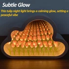 Cloud Shape Tulip Night Light: Unveiling an enchanting nocturnal companion, this night light features a cloud-shaped design with a pristine white casing, adorned by tulip-like flowers in delightful colors: pink, yellow, blue, purple and rainbow. (Note: Delivered fully assembled; no assembly required.) Amazing Mirror Spreading Effect Night Lamp: Elevate your ambiance with a simple switch as the tulip lamp transforms into a captivating infinite mirror effect. Witness an illusion of extending flowers that seem to stretch into infinite space, introducing enchantment and a touch of magic to any space. (Please note: Operation requires 2* AA batteries, not included.) Multi-Function Beauty Flower Lamp: Merging aesthetics with practicality, this lamp seamlessly combines form and function. During daylight hours, it serves as a sophisticated mirror, effortlessly reflecting your unique style while adding a touch of refinement to your surroundings. As evening descends, it smoothly transforms into a delightful decorative night light, bathing your space in a gentle and calming radiance that fosters a tranquil atmosphere of serenity. Perfect & Special Gift: Elevate celebrations with the cloud mirror tulip lamp, a thoughtful gift for birthdays, anniversaries, Christmas, Thanksgiving, or any special occasion. Its endearing design, coupled with versatile functionality, positions it as a memorable and cherished gift, sparking delight and admiration, a perfect symbol of joy for her. Establishing Tranquil Ambiance: Immerse yourself in the soft glow emanating from this tulip night light, delicately shaping a tranquil atmosphere. It forms a calm sanctuary, inviting you to unwind and appreciate the beauty that envelops your surroundings. Product Description Joezhe Tulip Mirror Night Lamp 5 Colors Cloud Shape Night Light Cozy Desktop Decoration Infinite Mirror Effection A Surprise Gift for Any Time Specifications: Product Name: Cloud Tulip Night Light Condition: Brand new Flower Color: Pink, Yellow, Blue, Purple, Rainbow Material: ABS Size: 7.95 inch(L)*5.11 inch(H)*1.57 inch(W) Weight: 0.77 lb Package included: 1 * Cloud Tulip Night Light(Finished product, no need to assemble, 2 * AA batteries are not included) Please Note: Colors may be slightly different depending on different monitor or light effect. Description: The tulip night light offers a unique and sophisticated touch to your home setting. Its elegant tulip-shaped design captivates the eye, providing a distinctive decorative element that enhances the overall aesthetic of any room. This night light's minimalist allure without a lampshade creates a modern and chic ambiance. What sets this product apart is its sleek and uncomplicated design. It provides a direct and enchanting glow, emphasizing simplicity and contemporary elegance. This stripped-down approach not only complements modern decor but also allows for versatile placement, effortlessly integrating into various spaces. Driven by battery power, this tulip night light ensures convenience and flexibility. Its cordless nature allows you to place it wherever you desire, unhindered by the constraints of power outlets. The energy-efficient LED technology ensures enduring illumination, and without a lampshade, the light is more direct and focused, making it an ideal choice for creating cozy corners or accentuating specific areas in your home.