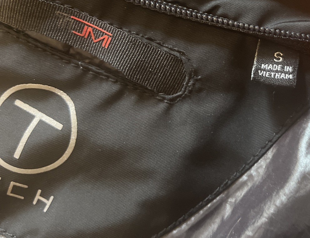 The Tumi T-Tech Men's S Packable Hooded Jacket in Black is a versatile and stylish windbreaker perfect for various occasions, including travel, casual outings, and formal events. Made from durable polyester softshell fabric, this mid-length jacket features a zip and button closure, hood, and is machine washable for easy care. In great condition size small, small blemish on the left sleeve. Feel free to ask any questions!