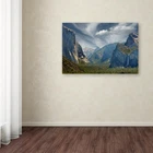 This ready to hang, gallery-wrapped art piece features a rocky canyon scene with trees at the bottom of a valley. Mike's love of photography started at age 10 when his father taught him how to use his old Pentax SLR . By the time he graduated high school, he had also graduated from his 35mm Pentax, to an old 4x5 Graflex . From the beginning, landscapes were his true passion. During Summer vacations in Maine, Mike would choose to climb around the rocky shore with a and tripod instead of shopping with his family in downtown Bar Harbor. He soon landed a job shooting photos for a local newspaper where he continued to work while studying photography in college. Giclee (jee-clay) is an advanced printmaking process for creating high quality fine art reproductions. The attainable excellence that Giclee printmaking affords makes the reproduction virtually indistinguishable from the original piece. The result is wide acceptance of Giclee by galleries, museums, and private collectors. Gallery wrap is a method of stretching an artist's canvas so that the canvas wraps around the sides and is secured a , wooden frame. This method of stretching and preparing a canvas allows for a frameless presentation of the finished painting. Artist: Mike Jones photo Subject: Landscape Style: natural modern Product Type: Gallery-Wrapped canvas art Made in USA