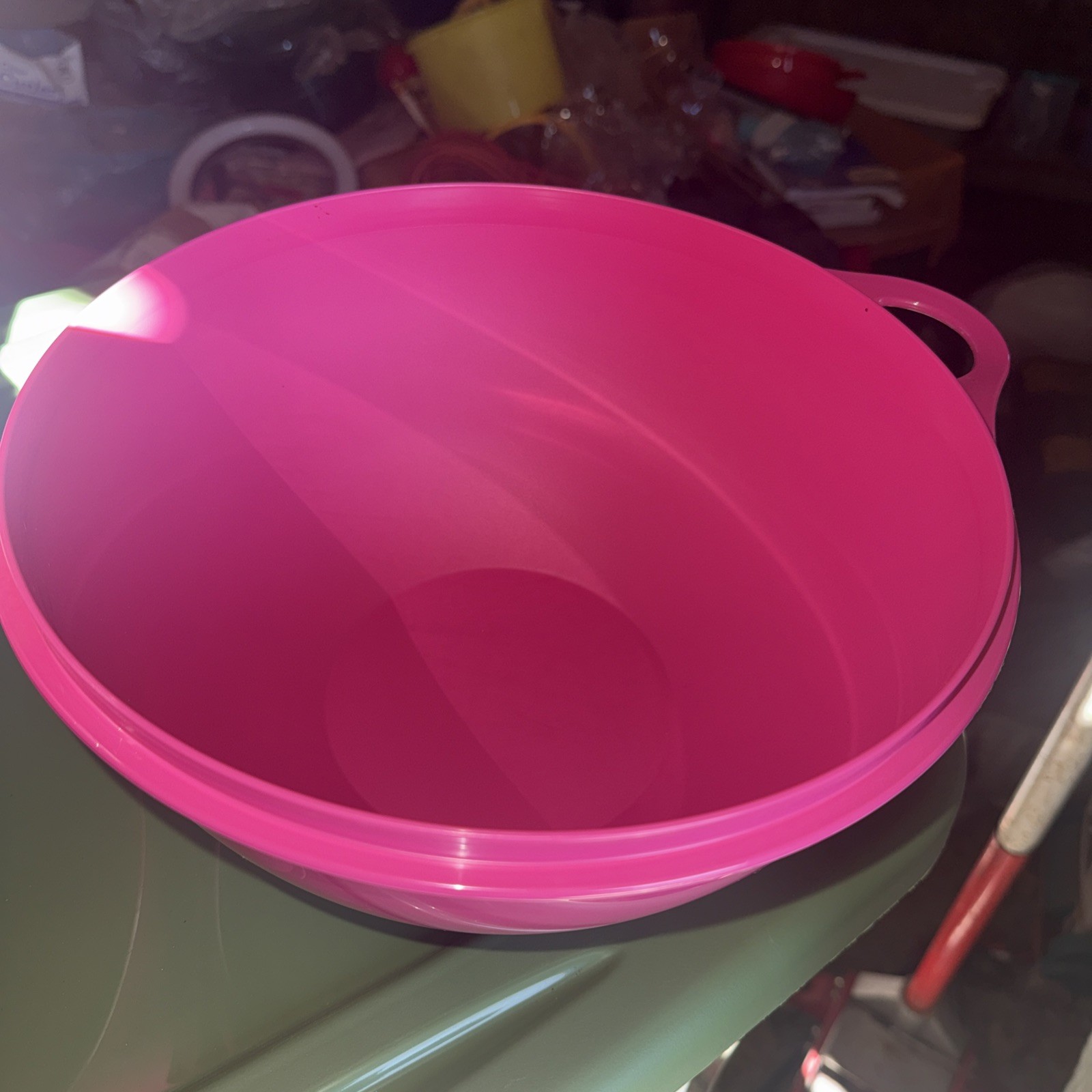 The Tupperware Thatsa mixing bowls in hot pink are stylish and functional kitchen tools that add a pop of color to your cooking space. These iconic Tupperware bowls are perfect for everyday use or as a collectible item for fans of the brand. Whether you're mixing ingredients for a recipe or storing leftover food, these pink bowls are both practical and eye-catching.