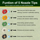UPGRADED MATERIALS: Turbo nozzle with stainless steel housing and ceramic innards. Replaced original nozzle made of a composite material with this, better damage-resistant and strong enough, longer use life. POWERFUL ACTION: Rotating nozzle spins at a high speed. Compared it to regular pressure washer tips, it cleans faster and larger areas, cuts the working time by more than 50%. With it for achieving professional-level results effortlessly. APPLICATION: Pressure washer nozzle is designed for heavily soiled cleaning specially, which a nice choice for removing years of grime and paint off concrete. It works great on vinyl siding, decking, patio, garage, sidewalk and driveway etc. VERSATILE: Additional nozzle tips give you 5 good options for your power washer. 5 different degrees nozzles are easy to switch and satisfy your daily washing needs. UNIVERSAL: Pressure washer tips have 1/4” quick connect, compatible with most brands of pressure washer wand or gun for faster application. Easy to install and ideal for efficient cleaning. Orifice Size is 4.0. UPGRADED MATERIALS: Turbo nozzle with stainless steel housing and ceramic innards. Replaced original nozzle made of a composite material with this, better damage-resistant and strong enough, longer use life. POWERFUL ACTION: Rotating nozzle spins at a high speed. Compared it to regular pressure washer tips, it cleans faster and larger areas, cuts the working time by more than 50%. With it for achieving professional-level results effortlessly. APPLICATION: Pressure washer nozzle is designed for heavily soiled cleaning specially, which a nice choice for removing years of grime and paint off concrete. It works great on vinyl siding, decking, patio, garage, sidewalk and driveway etc. VERSATILE: Additional nozzle tips give you 5 good options for your power washer. 5 different degrees nozzles are easy to switch and satisfy your daily washing needs. UNIVERSAL: Pressure washer tips have 1/4” quick connect, compatible with most brands of pressure washer wand or gun for faster application. Easy to install and ideal for efficient cleaning. Orifice Size is 4.0.