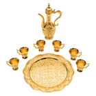 Specification Material: Zinc Alloy Process: Die-casting, Polishing, Plating Style: Antique, Turkish Number of Tea Cups: 6 Dishwasher Safe: No Teapot Capacity: 250ml/8.45Oz Each Tea Cup Capacity: 30ml/1.01Oz Assembly Required: No Tea Cup Size (D*H):5*6cm/1.97*2.36in Pot Size(L*H): 12.9*22cm/5.08*8.66in Tray Diameter: 24.5cm/9.65in Package Size: 26*26*9cm/10.24*10.24*3.54in Gross Weight: 0.9kg/1.98lbs Net Weight: 0.84kg/1.85lbs Package Included 1*Tray 1*Teapot 6*Teacups Description This Turkish tea set is unique, exquisitely designed, and crafted. It includes a teapot, 6 teacups, and a tea tray, and each component has been carefully selected and polished to ensure its quality and durability. The teapot has a classic and elegant shape with beautiful carvings, ad Turkish Tea Set Vintage Coffee Set W/ Pot +6 Cups for Wedding Tea Serving Set Specification Material: Zinc Alloy Process: Die-casting, Polishing, Plating Style: Antique, Turkish Number of Tea Cups: 6 Dishwasher Safe: No Teapot Capacity: 250ml/8.45Oz Each Tea Cup Capacity: 30ml/1.01Oz Assembly Required: No Tea Cup Size (D*H):5*6cm/1.97*2.36in Pot Size(L*H): 12.9*22cm/5.08*8.66in Tray Diameter: 24.5cm/9.65in Package Size: 26*26*9cm/10.24*10.24*3.54in Gross Weight: 0.9kg/1.98lbs Net Weight: 0.84kg/1.85lbs Package Included 1*Tray 1*Teapot 6*Teacups Description This Turkish tea set is unique, exquisitely designed, and crafted. It includes a teapot, 6 teacups, and a tea tray, and each component has been carefully selected and polished to ensure its quality and durability. The teapot has a classic and elegant shape with beautiful carvings, adding an artistic touch to tea making. Let's sip tea from these carefully crafted teacups to feel the beauty of time and space and experience a journey through history. Key Features Sturdy and Durable: The products are made of high-quality zinc alloy and through the process of die-casting, polishing, electroplating, and dripping glue, with corrosion resistance, high hardness, high smoothness performance, and long service life. Large Capacity: The large capacity teapot (8.45Oz) and teacup (each 1.01Oz) can meet your needs for drinking with your family or friends. Multi-functional: This product can not only be used as a tea set, you can use it as a wine awakener, wine decanter, wine dispenser, and so on according to your preferences. It also can hold liquids such as tea, coffee, and wine. Convenient to Use: The design of the press to open the pot makes it easier for you to hold it, and the rounded edge treatment on the surface of the product makes it not easy for you to cut your hand in the process of using it. Easy to Clean: The polished smooth surface and simple construction make the product easy to clean with water. Enhancement of Taste: The exquisite pattern is a wonderful blend of art and emotion, which is your high-end luxury interior decoration product. It is a great blend of three elements: European palatial atmosphere, exquisite carvings, and bright warm colors, bringing you an unusual visual enjoyment. With this exquisite tea set, you can experience the rich traditions of Turkish tea culture in the comfort of your own home. Direct Use: You can use the product directly after receiving it without assembling it, thus saving you time and effort. An Ideal Gift: This product has a beautiful appearance, it is an ideal gift for weddings, engagements, housewarming celebrations, and anniversaries, it can bring blessings to your family and friends, tea lovers, and history enthusiasts. Details Eagle Beak Spout: The spout is designed like a delicate eagle's beak with beautifully rounded curves and an ergonomic design for easy pouring. Anti-break Lid : The newly upgraded break-resistant design provides you with higher quality assurance and allows you to replace the cover as needed. Delicate Carving: This product adopts the combination of traditional Chinese carving and European carving art, with the relief symbolizing happiness and auspiciousness, bringing good luck to your family. Delicate Tray: The bottom of the tray is beautifully textured with a large embossed floral pattern. The entire tray has a soft curved edge, just like a blooming flower. It can not only place teapots and teacups to decorate the home environment but can also place fruits and other items separately, which is practical. Handle: Its shape is sinuous, just like a dragon flying in the sky. It is not only beautiful but also easy to grip. Application This product is suitable for tea steeping and enjoyment in homes, restaurants, hotels, offices, tea art galleries, and other occasions. Notes After receiving the product, you are required to thoroughly clean the inside of the teapot and teacup before use. For dust cleaning, please use a soft wool brush or a hair duster to sweep gently and then wash with clean water, and do not wipe with a rough towel. For oil cleaning, please use a fine silk cloth or cotton cloth dipped in gasoline or oil cleaning agent to gently wipe wet, clean water wash. Please be careful in daily life to minimize the knock or indirect man-made damage, prevent sharp objects such as nails, knives, or blunt objects from scratching and collision, and avoid using liquid cleaners with chemicals. Please do not put it into the dishwasher to wash, so as not to damage the product. Please allow the slight color difference caused by the shooting light and 1-3cm error due to manual measurement, and make sure you do not mind before ordering. Payment Delivery details Terms of sales About us Contact us Payment We accept ebay payment 。 Fees such as import duties, taxes are not included in the item price or shipping costs. These charges are the buyer's responsibility. Delivery details Shipping: 2-9 working days to: USA Terms of sales We maintain high standards of excellence and strive for hundred percent customer satisfaction. Feedback is very important to us. We hope that you contact us immediately before you give neutral or negative feed