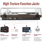 Multifunctional Retro Turntable System 1. Authentic Belt Drive System This turntable for vinyl record constructed with aluminium die-cast discs, polished stainless steel spindle, durable rubber belt, it produces a uniform inertial mass for perfect stability and rotation. 2. Adjustable Counterweight Design Setting counterweight makes tonearm balanced according to the stylus weight to ensure the stylus needle sits perfectly in the groove of the record, maintains the clarity of musical peaks, balances the channel, and provides freedom from noise and distortion to prevent scratches on vinyl records. 3. Wireless BT Output Record player with BT output help you pair wireless speakers or headphones and get rid of wires! Suddenly, the best place to place a turntable and your favorite listening position don't have to be the same. Just pair and listen how and where you want. Even better, no receiver is required. Note: Some BT speakers may not be connected properly, especially large soundbars, as this turntable is compatible with Bluetooth protocol HFPV1.5, A2DPV1.2, AVRCPV1.4, HSP1.2, GAVDP1.2, IOP 4. Built-in USB Digital Output Retro record player connect this turntable to your computer via the included USB cable and encode the vinyl audio to MP3 for digital storage and playback on your computer, smartphone or tablet. Listen to your vinyl records wherever life takes you! 5. Built-in Phono Preamp and Analog Phono/Line out Enjoy vinyl playback from any amplifier with the built-in MM-type preamp. Your phonograph turntable includes phono and line outputs, and can be played with or without a phono equalizer. 6. Two-speed Vinyl Player It supports 2-speed turntable (33 1/3, 45 RPM) to play all 7" 10" 12" vinyl records and favorite albums. 7. RCA Line Output Use RCA cables with red and white jacks to connect to external powered speakers for a multi-speaker sound quality experience~ [Wireless BT Output Connectivity] Using BT 5.3 version, automatically identifies BT devices within the nearest range. Pair with BT speakers or headphones for an amazing, wire-free experience. Even better, no receiver needed [Get More Support] If you have any questions, you can let us know, we will help you until solving it.These models of speakers are compatible with BT protocols HFPV1.5, A2DPV1.2, AVRCPV1.4, HSP1.2, GAVDP1.2, and IOP [Adjustable Counterweight Force] By balancing the tone arm and adjusting the appropriate weight of the stylus to achieve precise playback. Get perfect playback every time using the tonearm counterweight and advanced anti-skating system. These ensure the stylus is balanced and rests deep in your record’s groove, producing smooth stylus movement, protecting your records from damage [Great Connectivity Options] Enjoy vinyl playback with any amplifier using the built-in Magnetic type PHONO Preamp.This turntable includes both Phono and Line Outputs that allow playing of vinyl with or without a Phono equalizer [Audio MM Cartridge Stylus] The Audio AT-3600L diamond-tipped stylus cartridge is designed to produce rich sound and outstanding clarity, tracking your record’s grooves with precision for accurate, high-definition audio [USB to PC Vinyl Recording] Connect this turntable to your computer via USB and encode vinyl audio into MP3s for digitalized storage and playback on your computer, smartphone or tablet. Take your favorite vinyls with you on-the-go